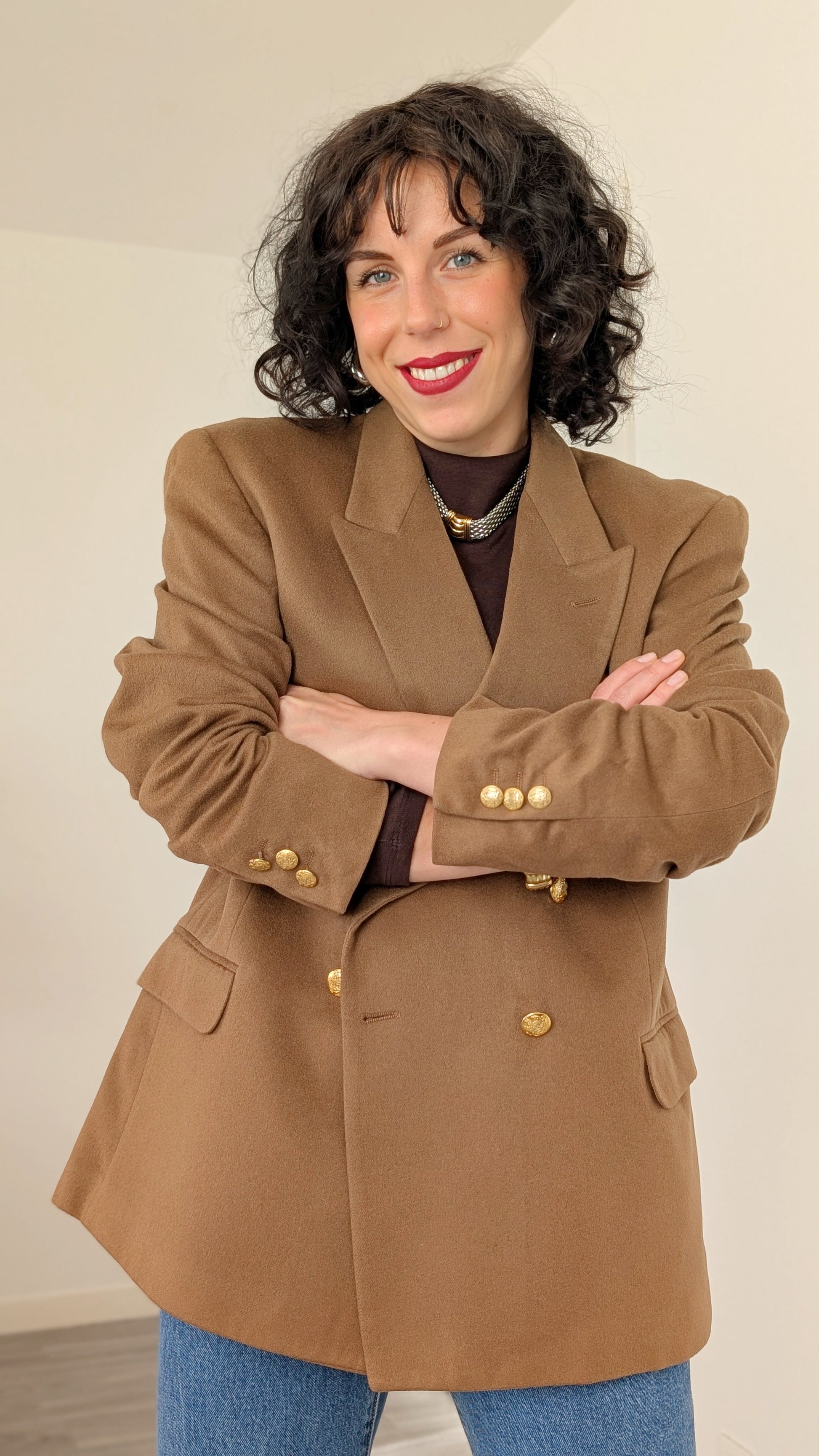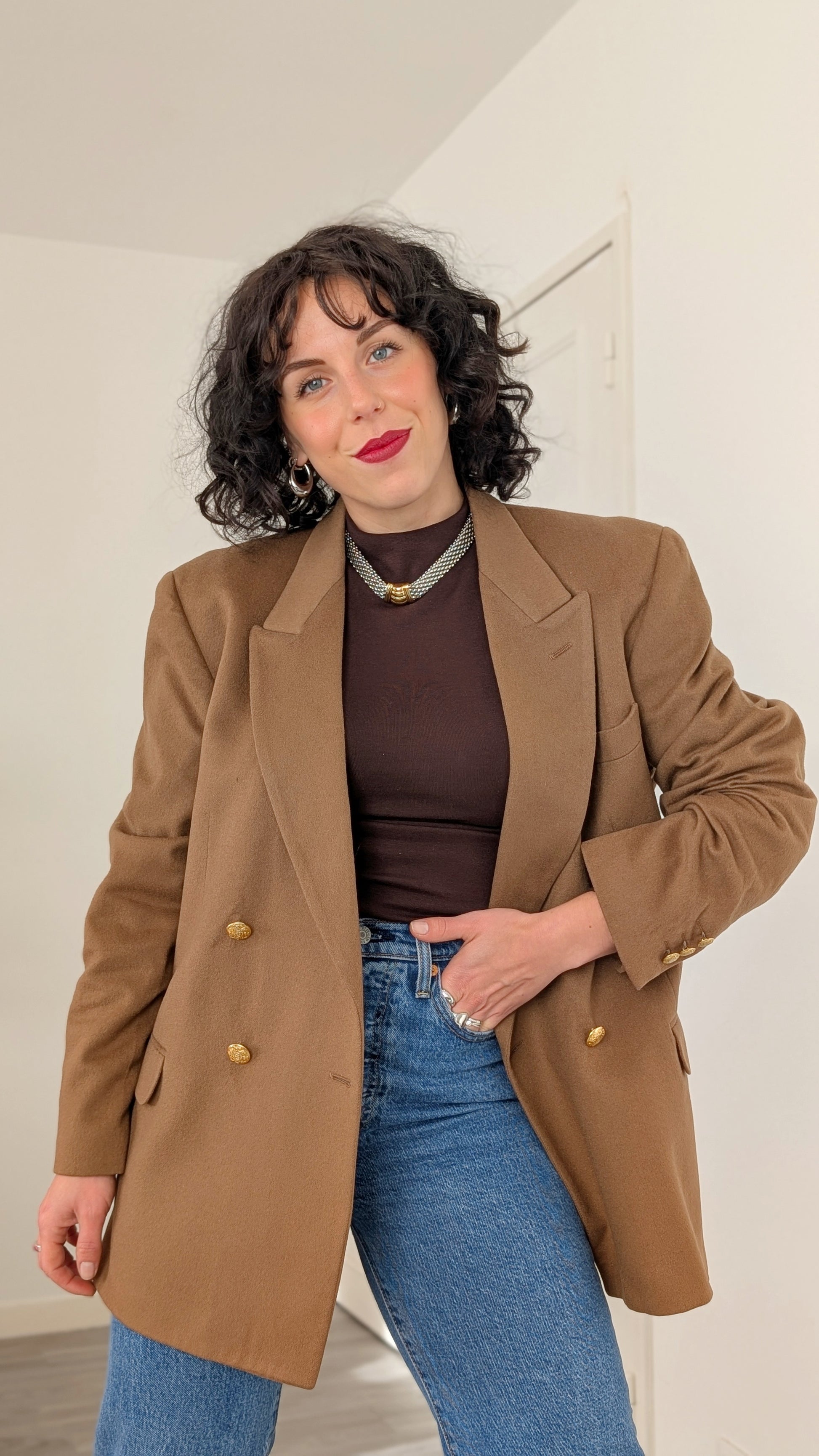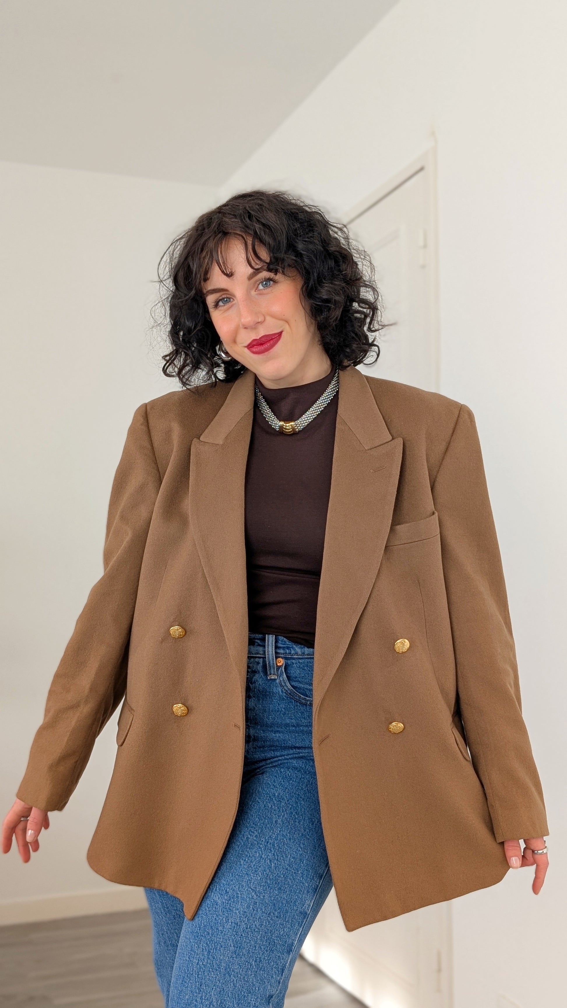 Détails : années 1980, superbe coupe croisée, boutons dorées bijoux, coupe masculine très belle, il me va trop grand sur les photos