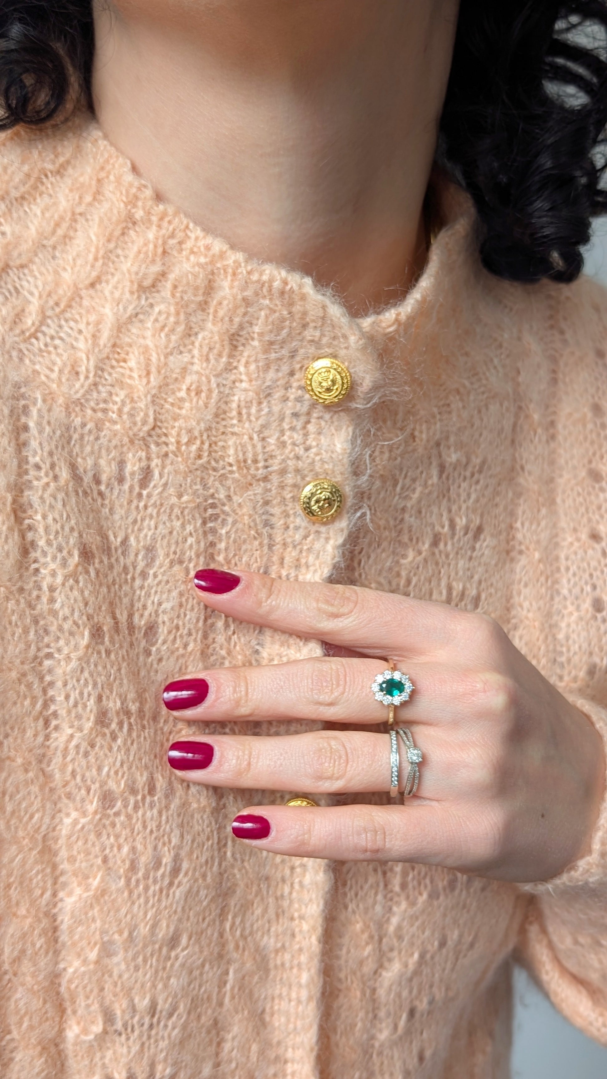 Détails : années 1980, tricoté main, superbe coupe, matière douce, super agréable à porter, boutons bijoux, coupe ample, cocooning