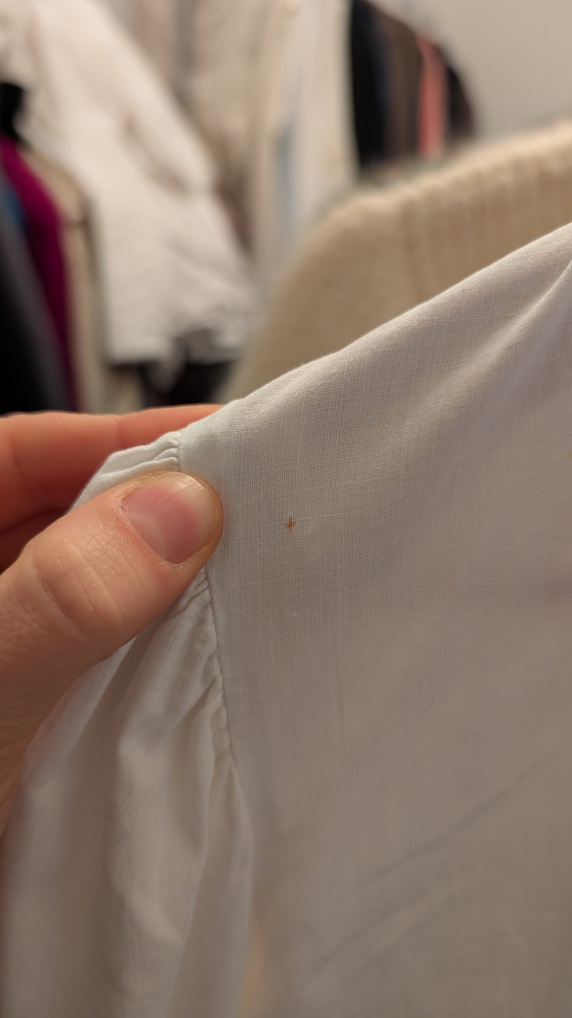 Mensurations : aisselles/buste 50 cm, longueur 48 cm, épaules 38 cm, longueur manches 62 cm
