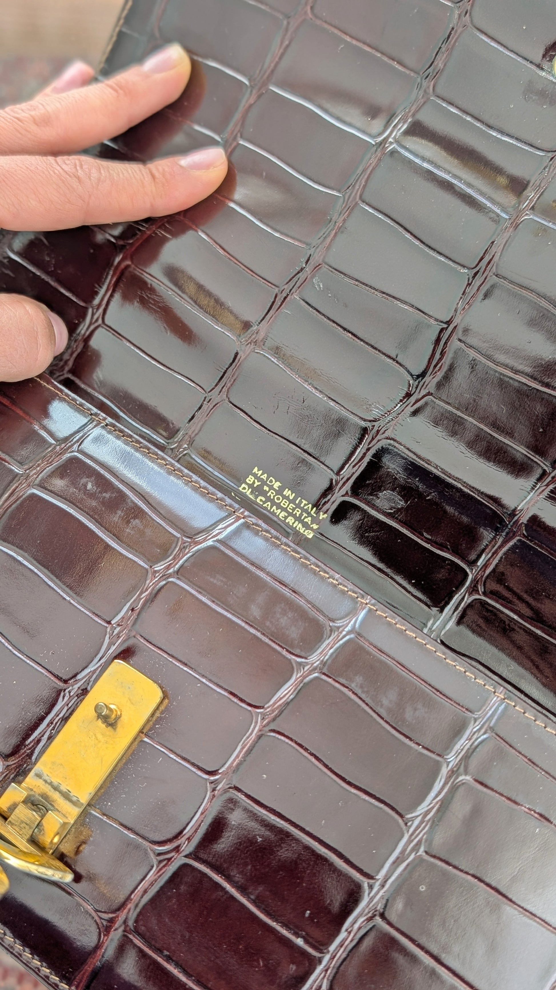 Cuir, années 1970, fabriqué en Italie, superbe couleur bordeaux foncé, possède une légère trace (voir photo, bon état général
