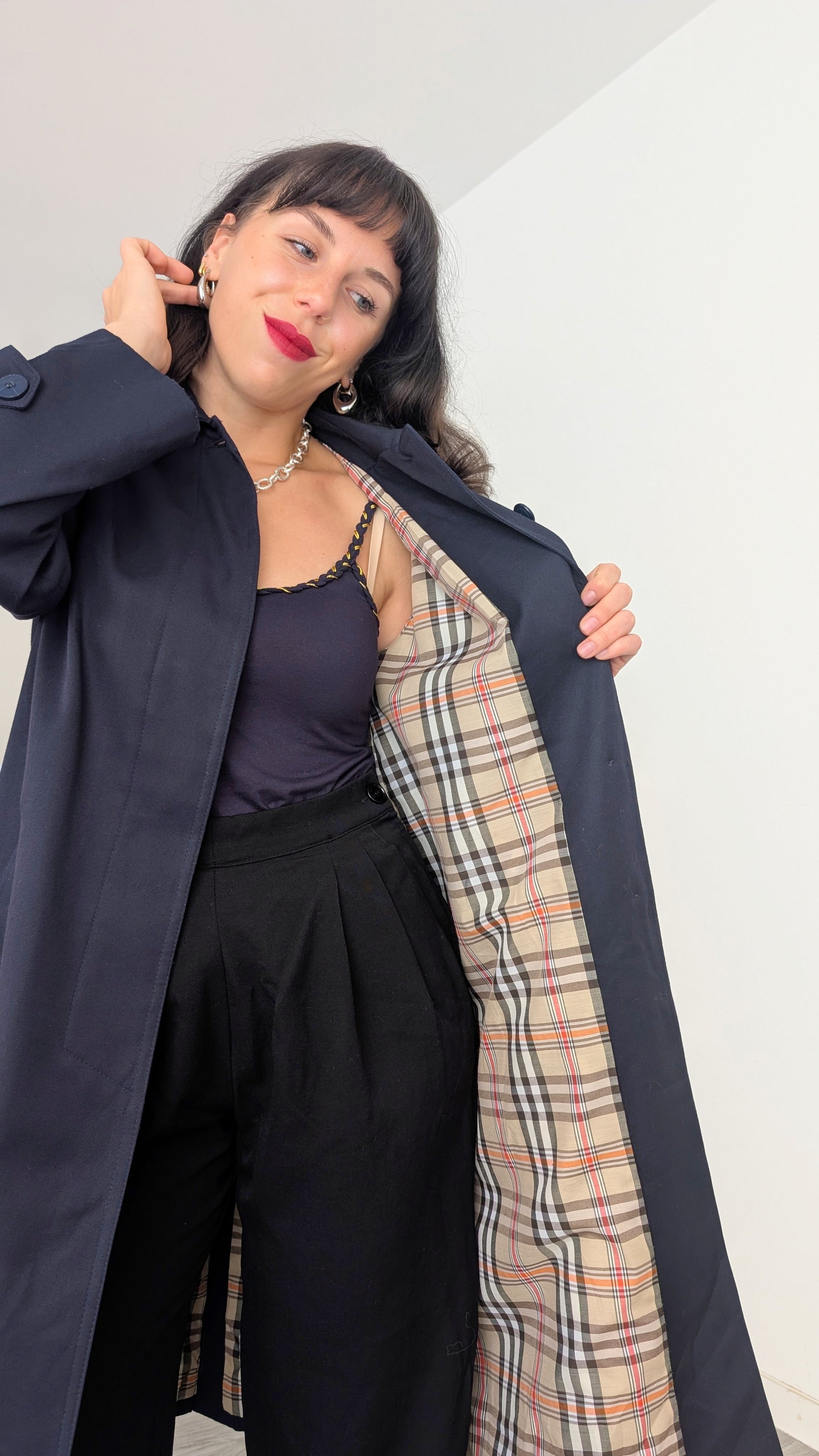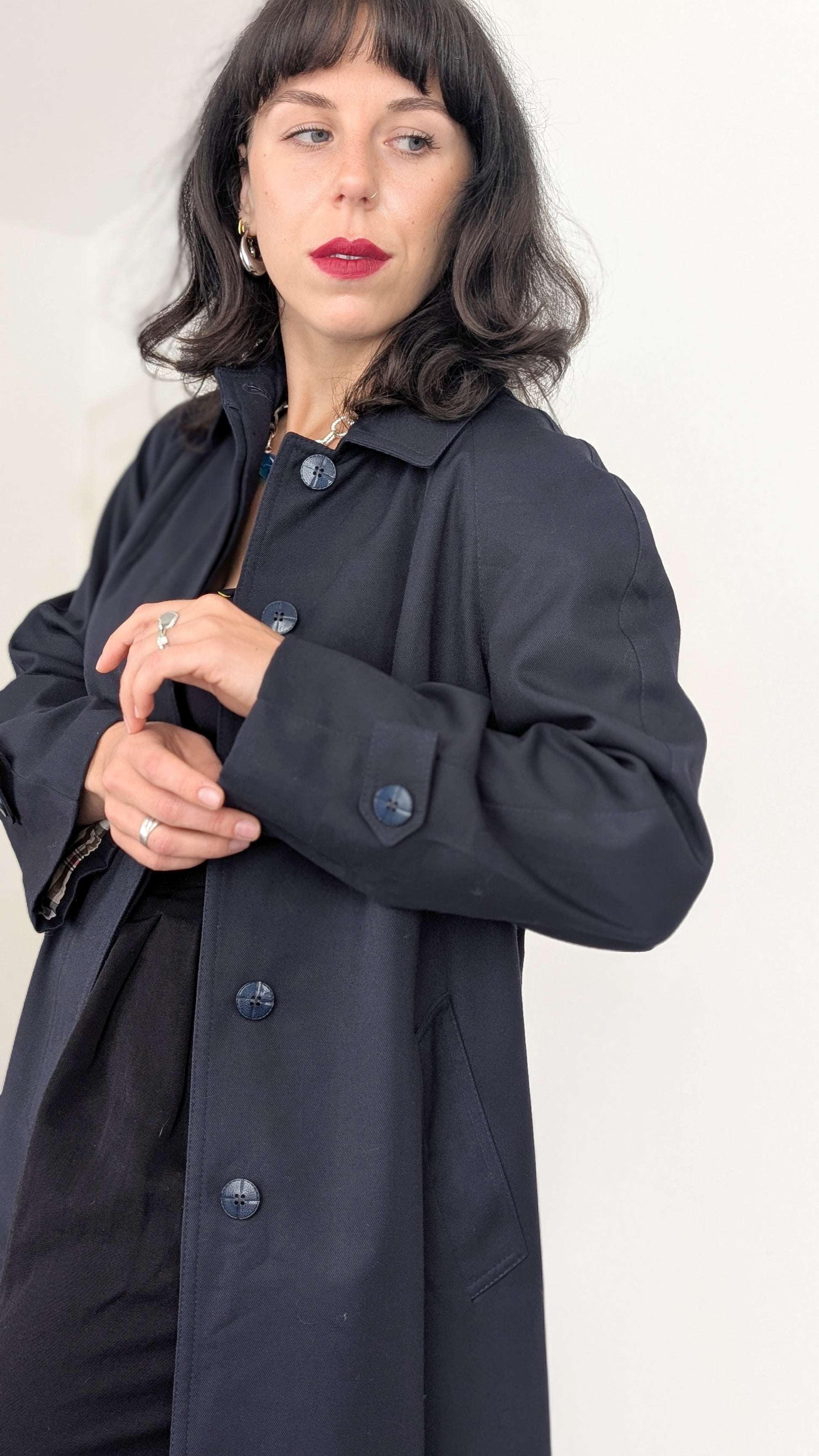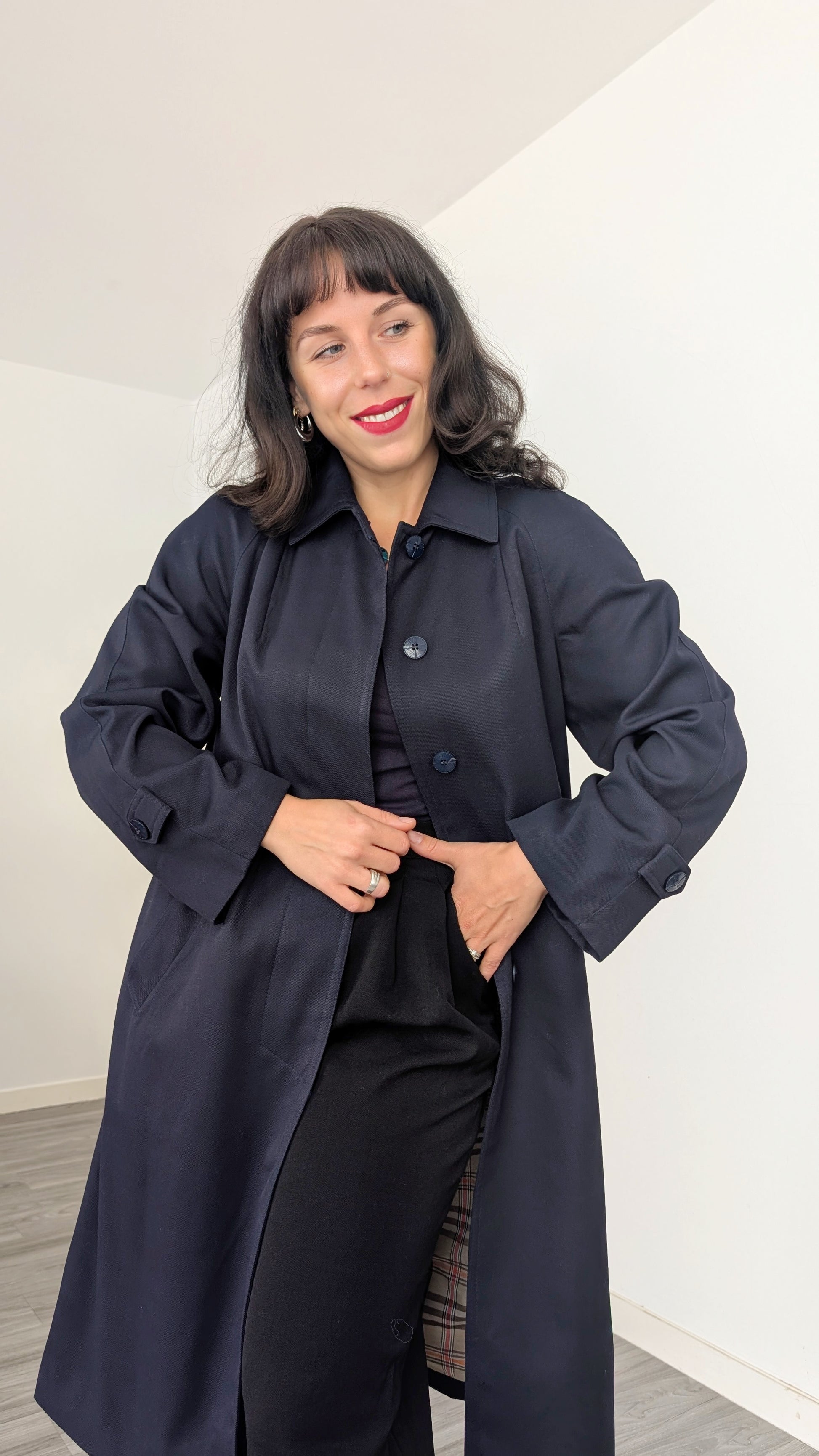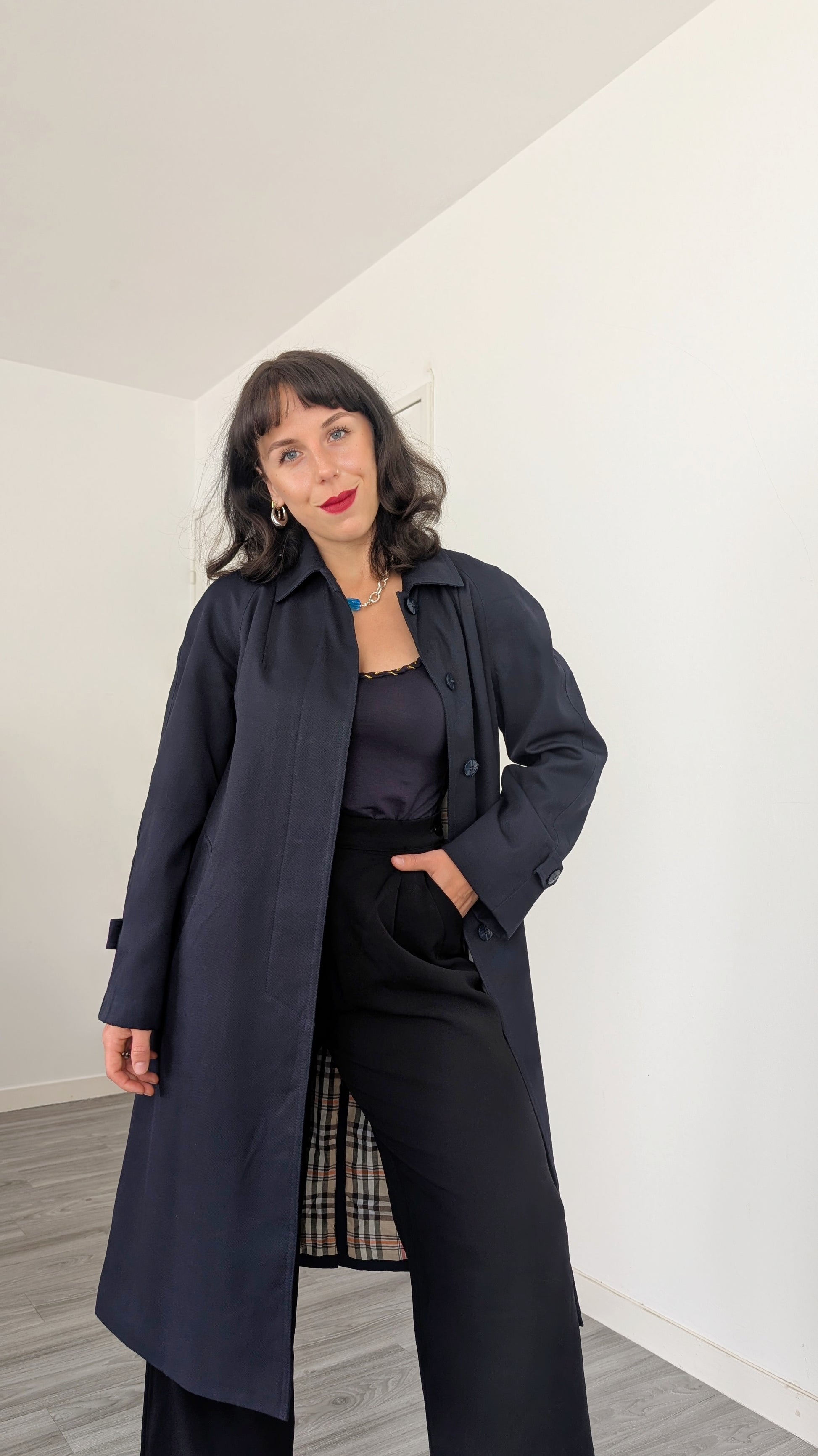 Détails : années 1980, fabriqué en France, très belle coupe avec des poches latérales et sa propre ceinture, les manches sont raglan, tombantes