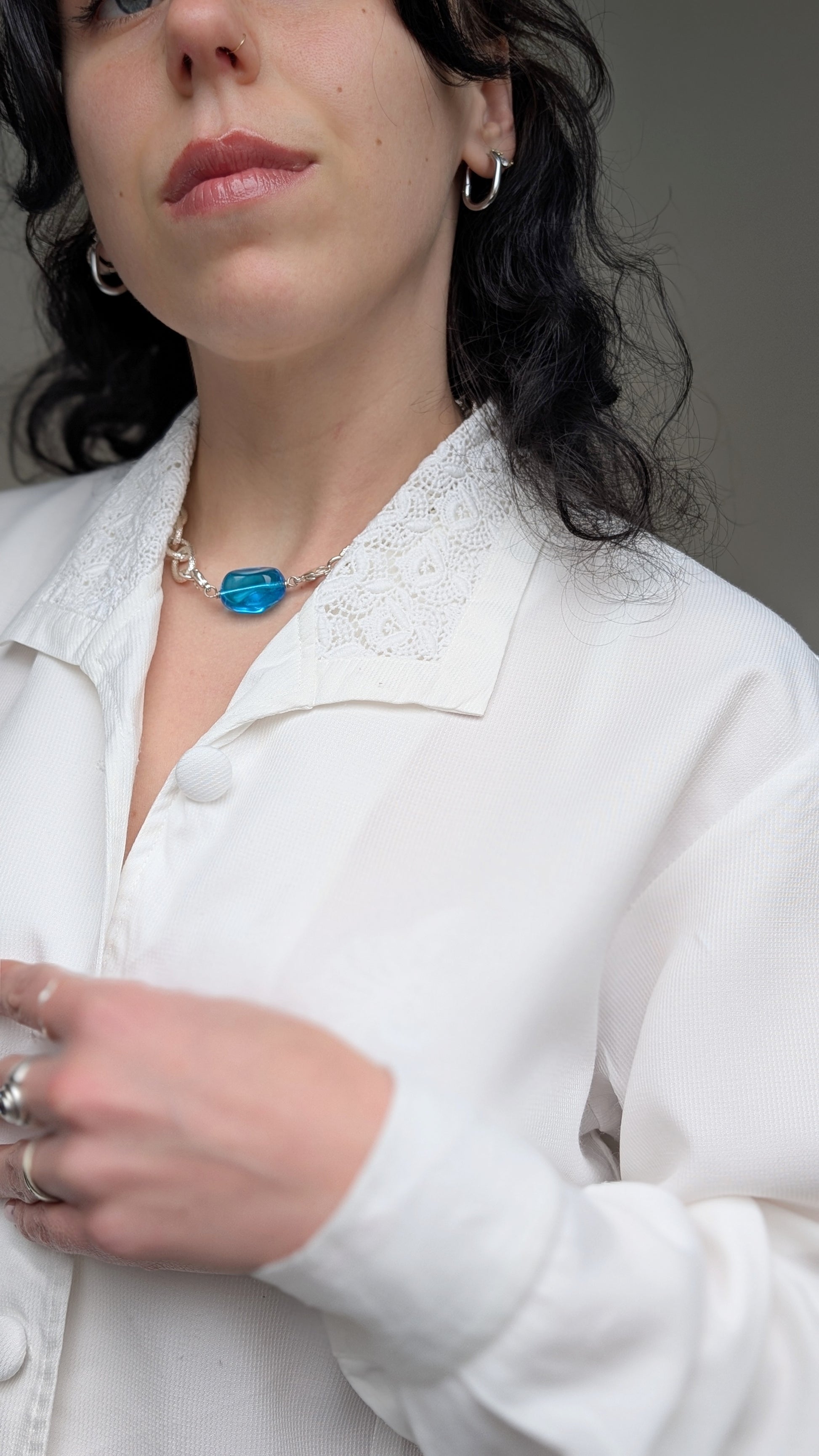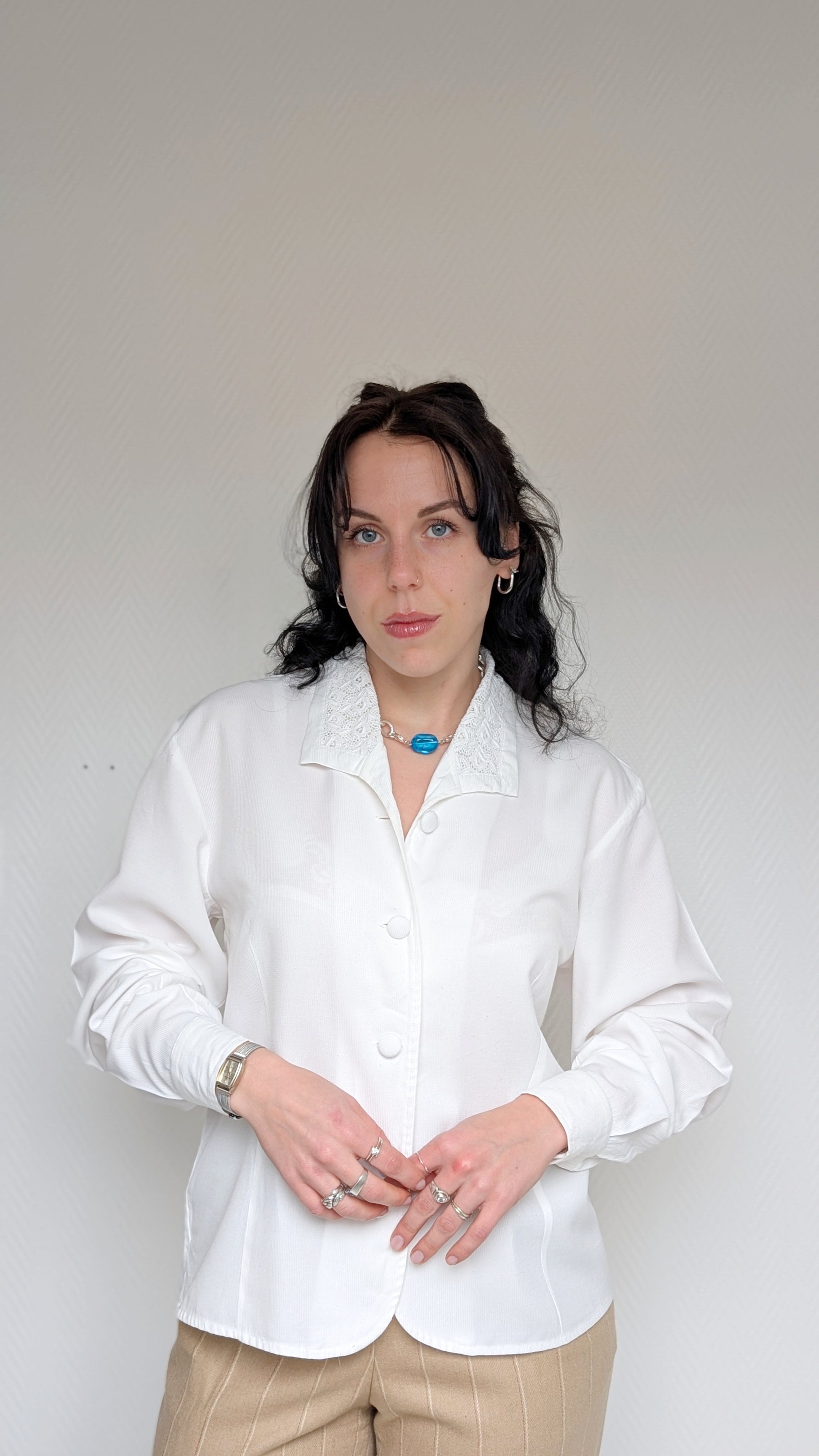 Détails : années 90, coupe boutonnée sur le devant, matière fluide