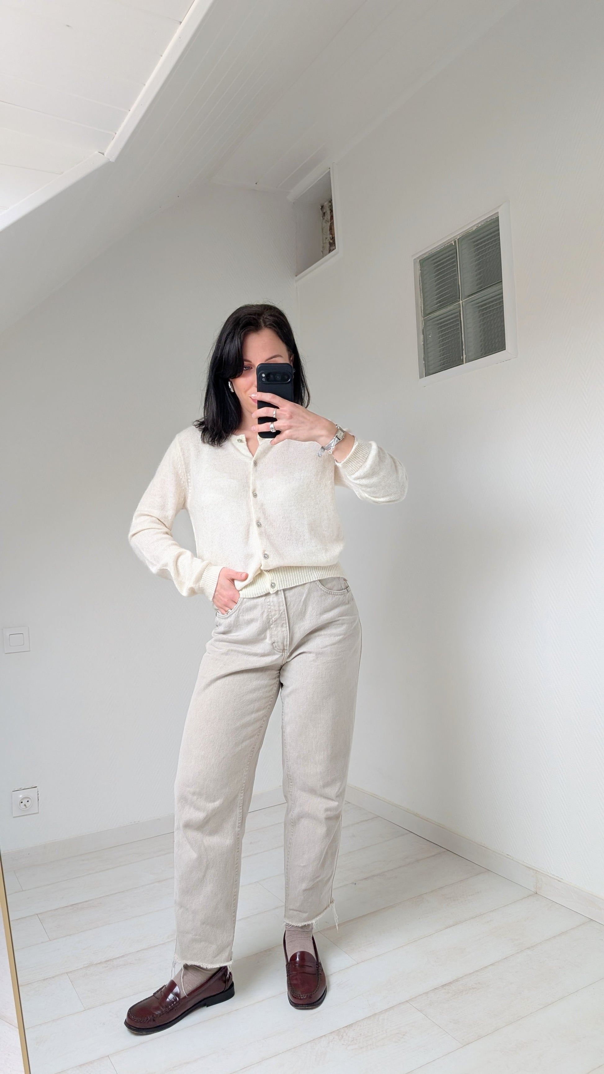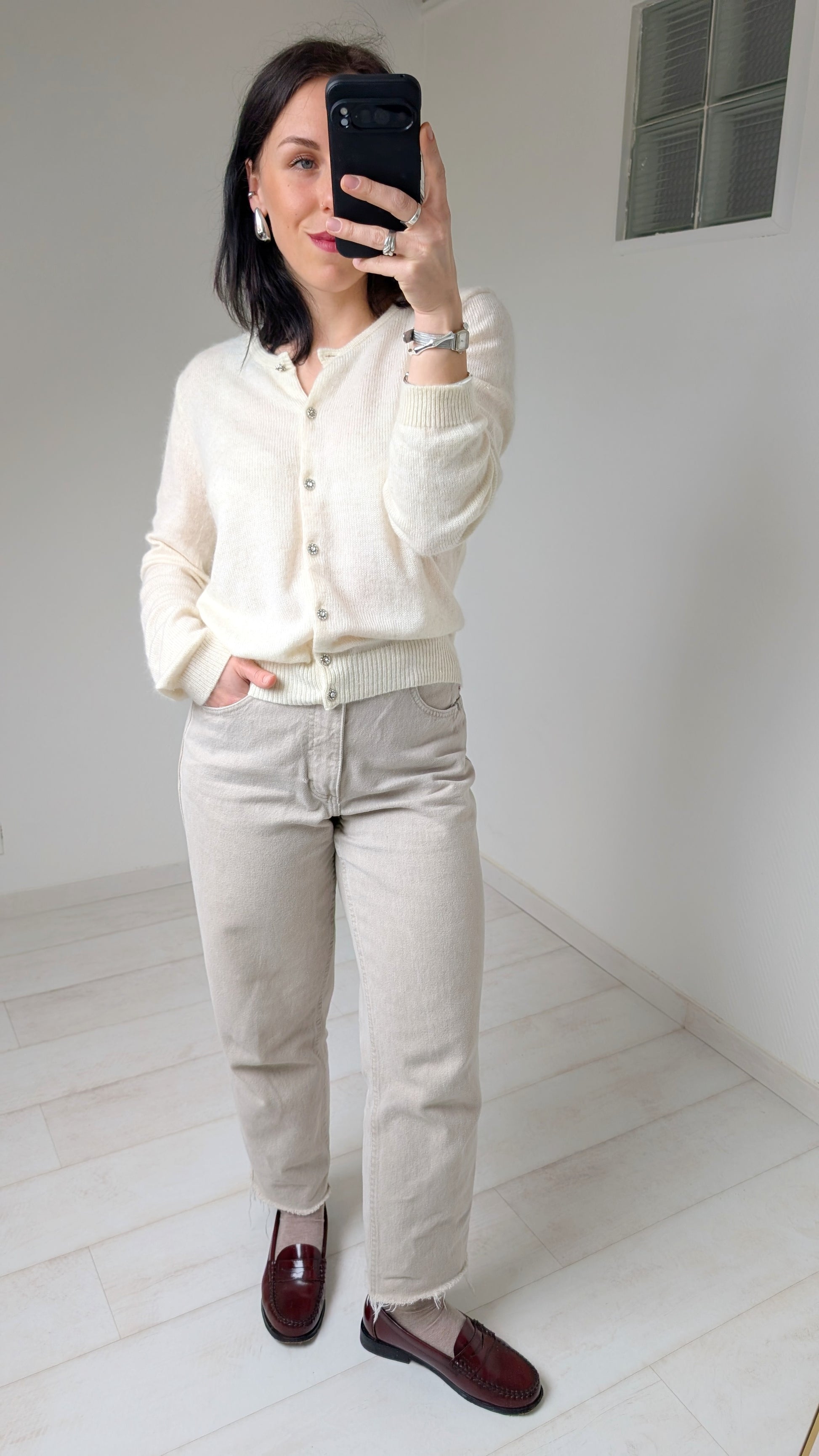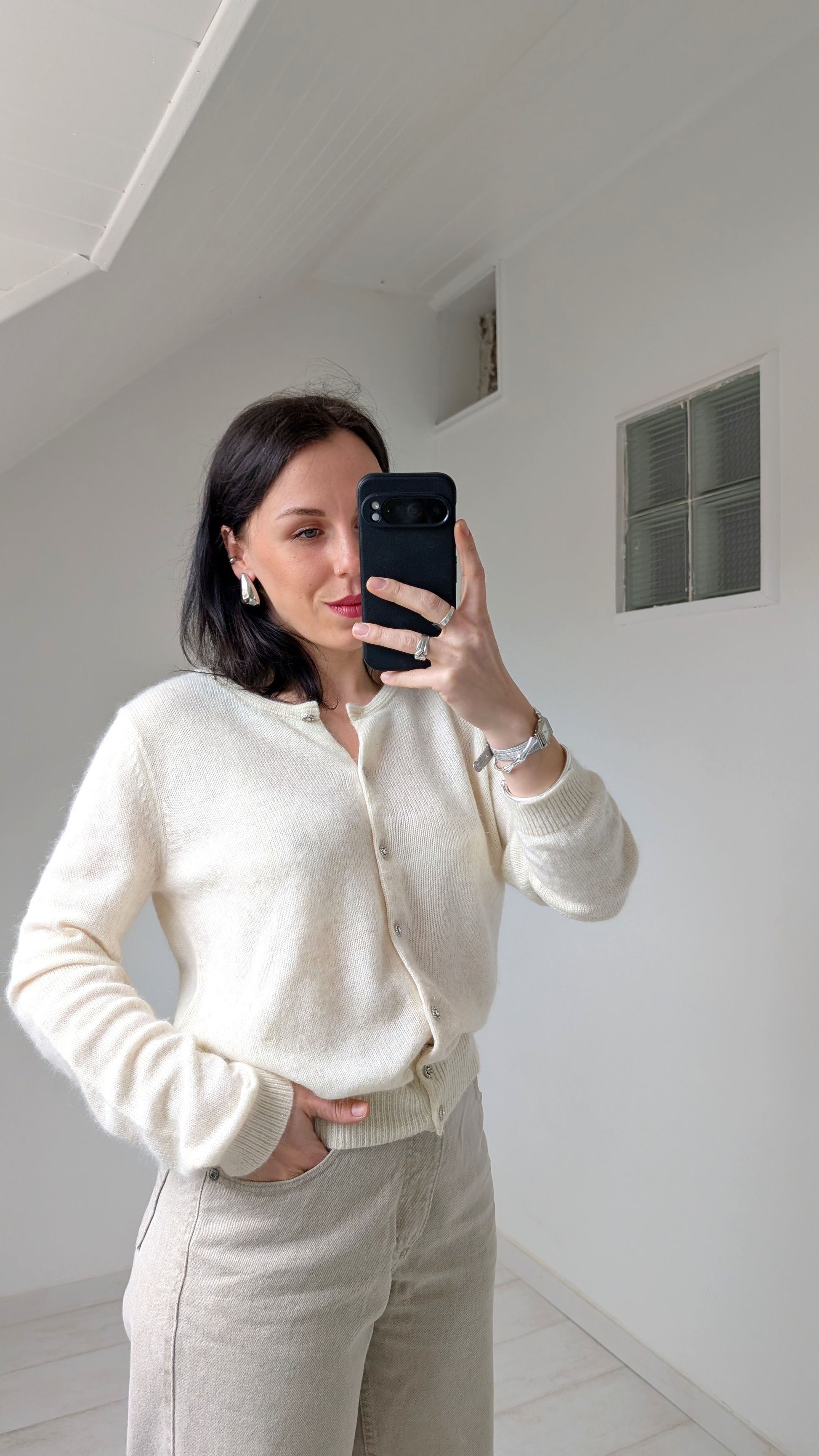 Détails : boutonné sur le devant avec des boutons bijoux, coupe classique, archi doux et agréable à porter, insertions irisées