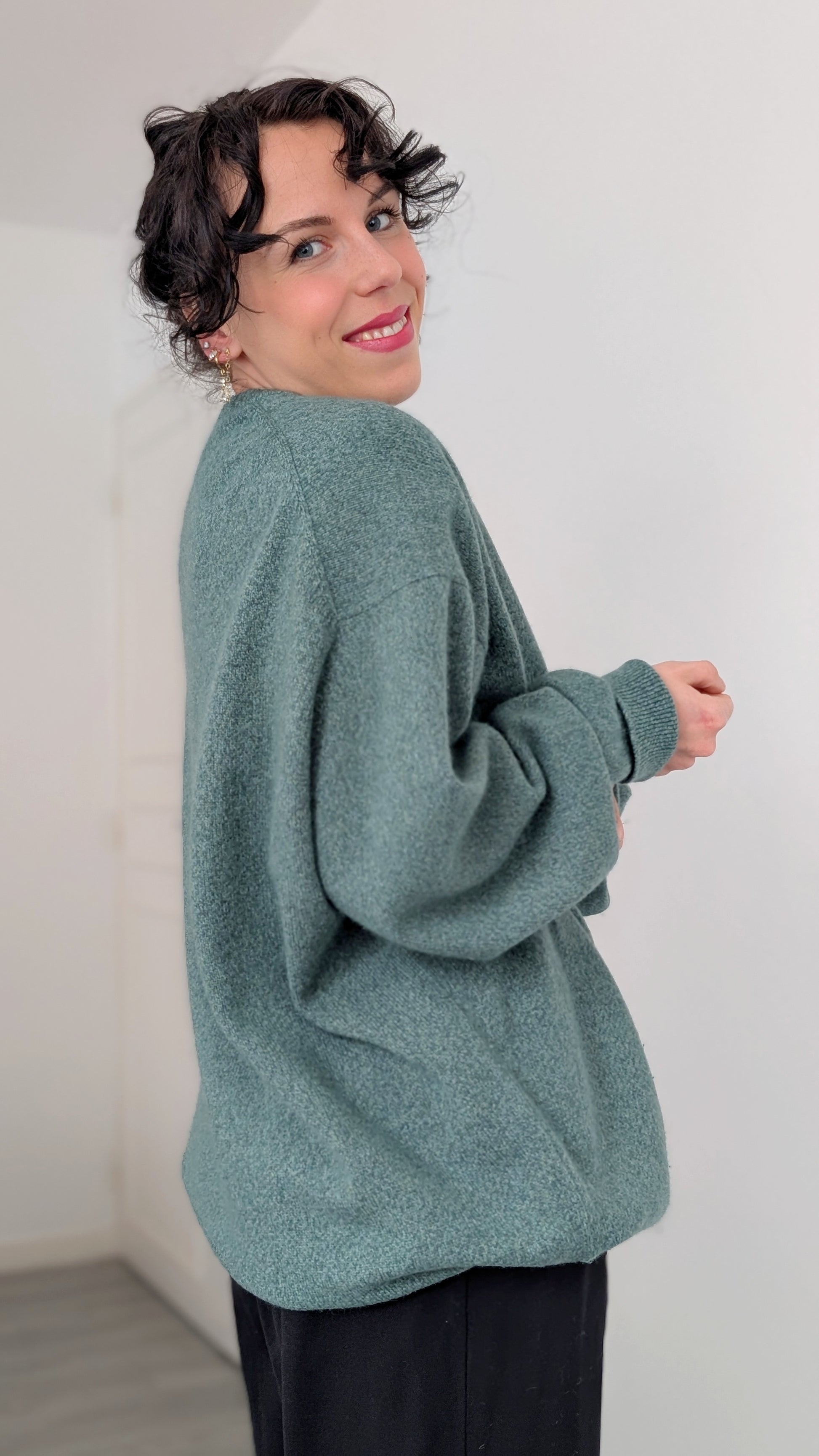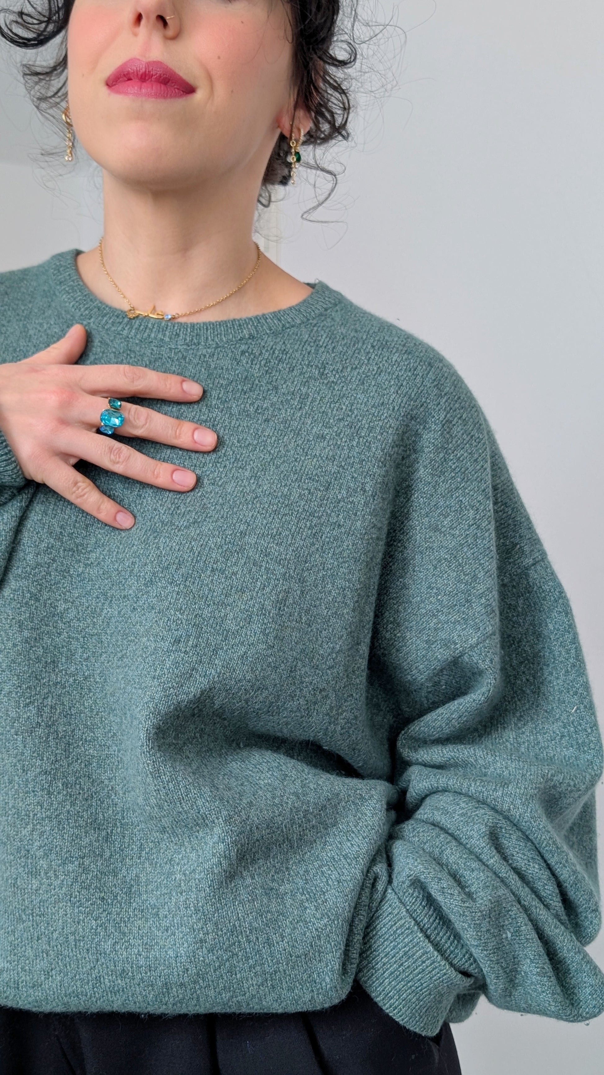 Détails : années 90, fabriqué en Ecosse, hyper ample et cocooning, très doux et agréable à porter