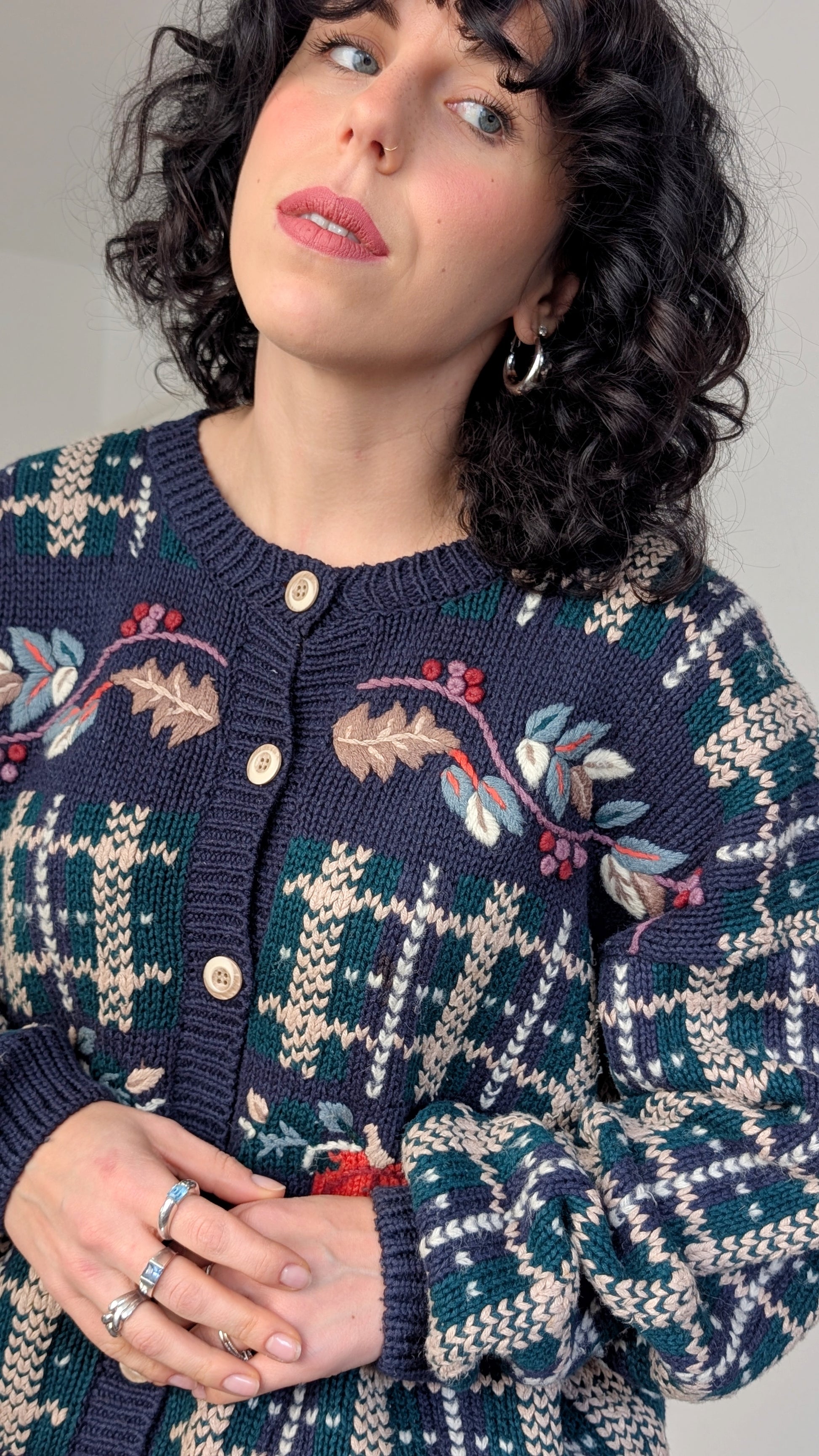 Détails : années 1980, brodé à la main, superbe qualité, parfait pour les personnes qui ne supportent pas la laine