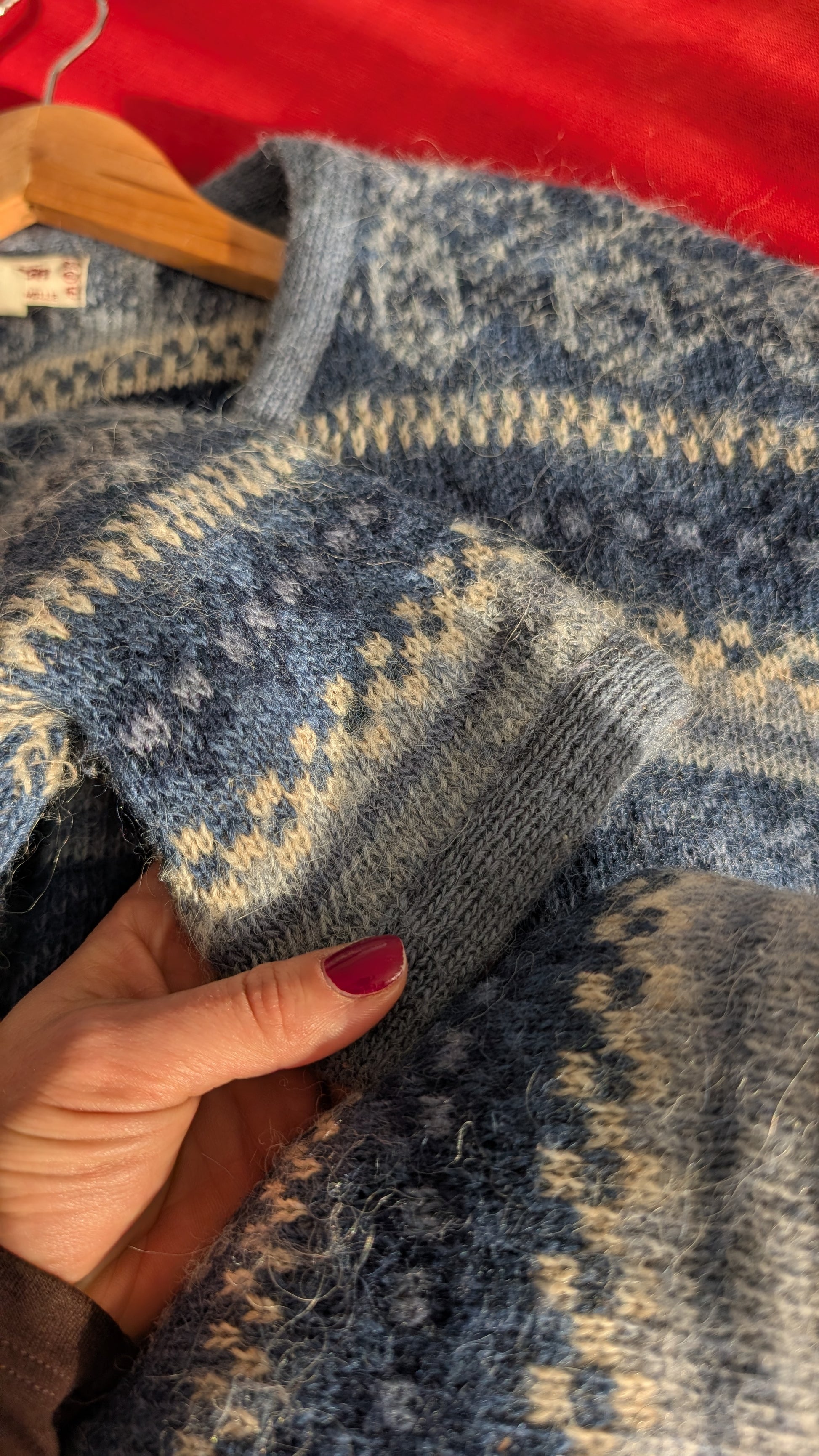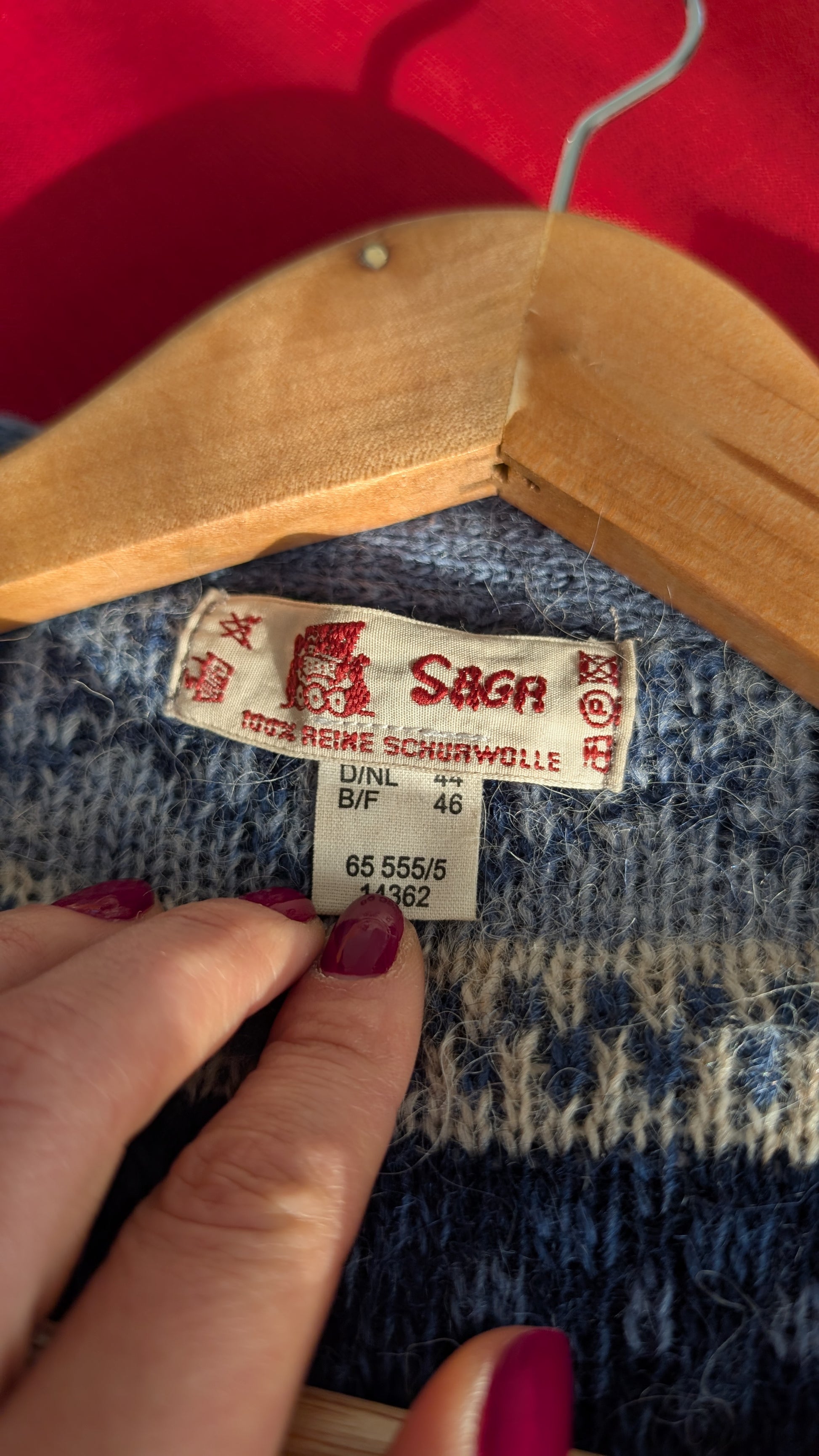 Mensurations : aisselles/buste 57 cm, longueur 94 cm, épaules 56 cm, longueur manches 65 cm