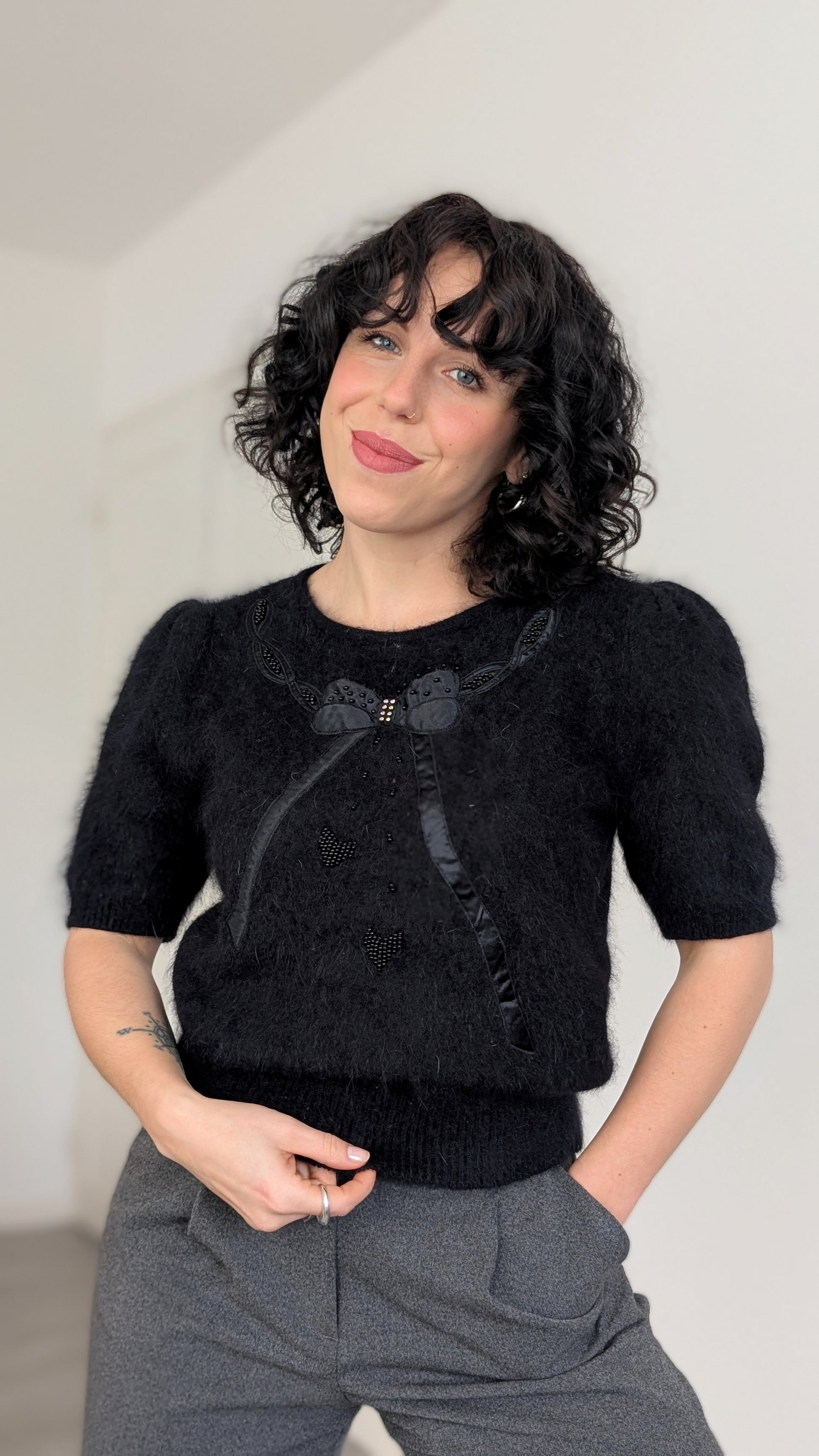 Détails : années 1980, manches bouffantes, resserré à la taille, archi doux