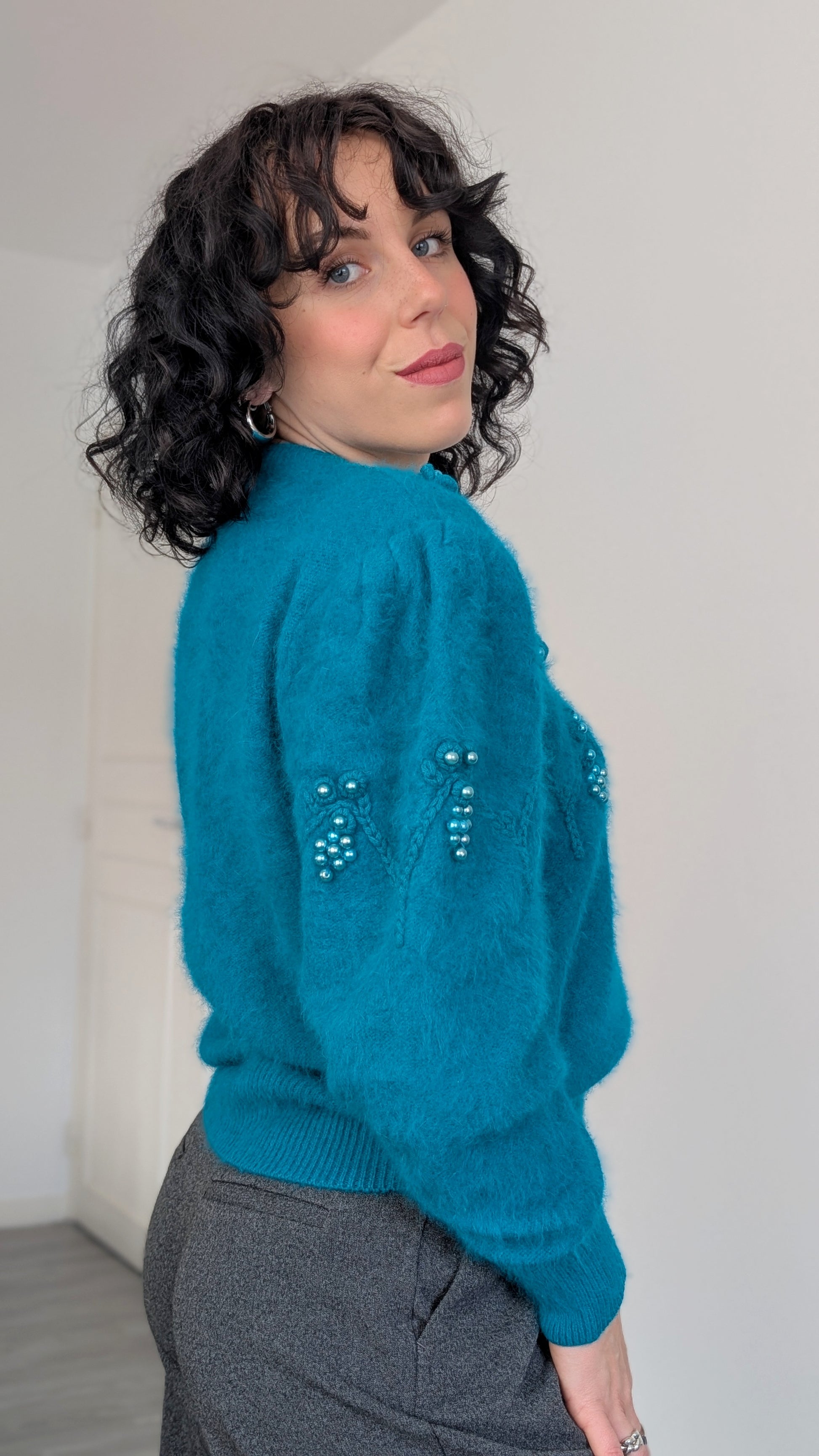 Détails : années 1980, épaules froncées, manches bouffantes, matière super douce et agréable à porter