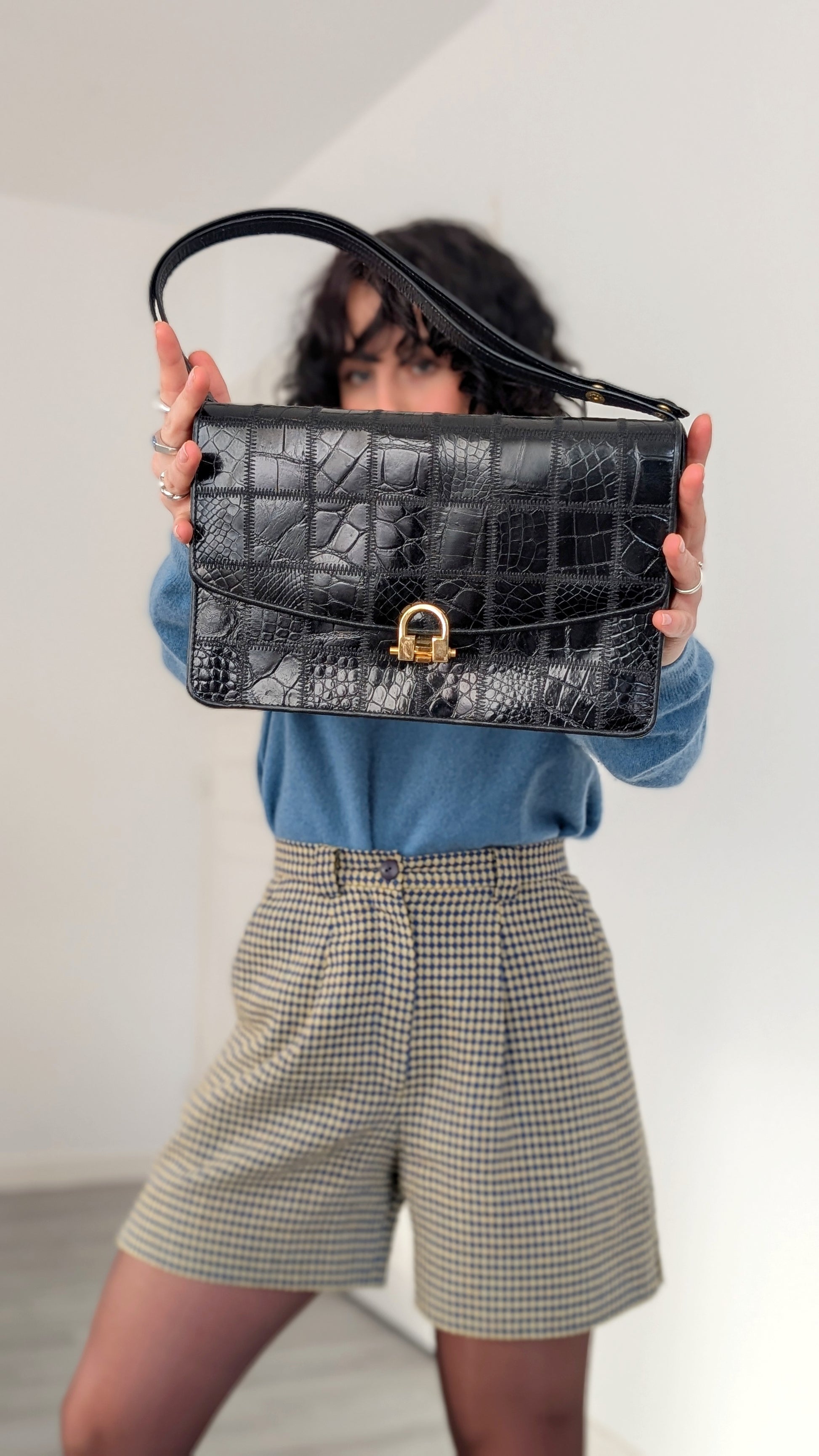 Années 1970, cuir patchwork, superbe qualité, comme neuf, l'anse peut se raccourcir pour la porter sur l'épaule