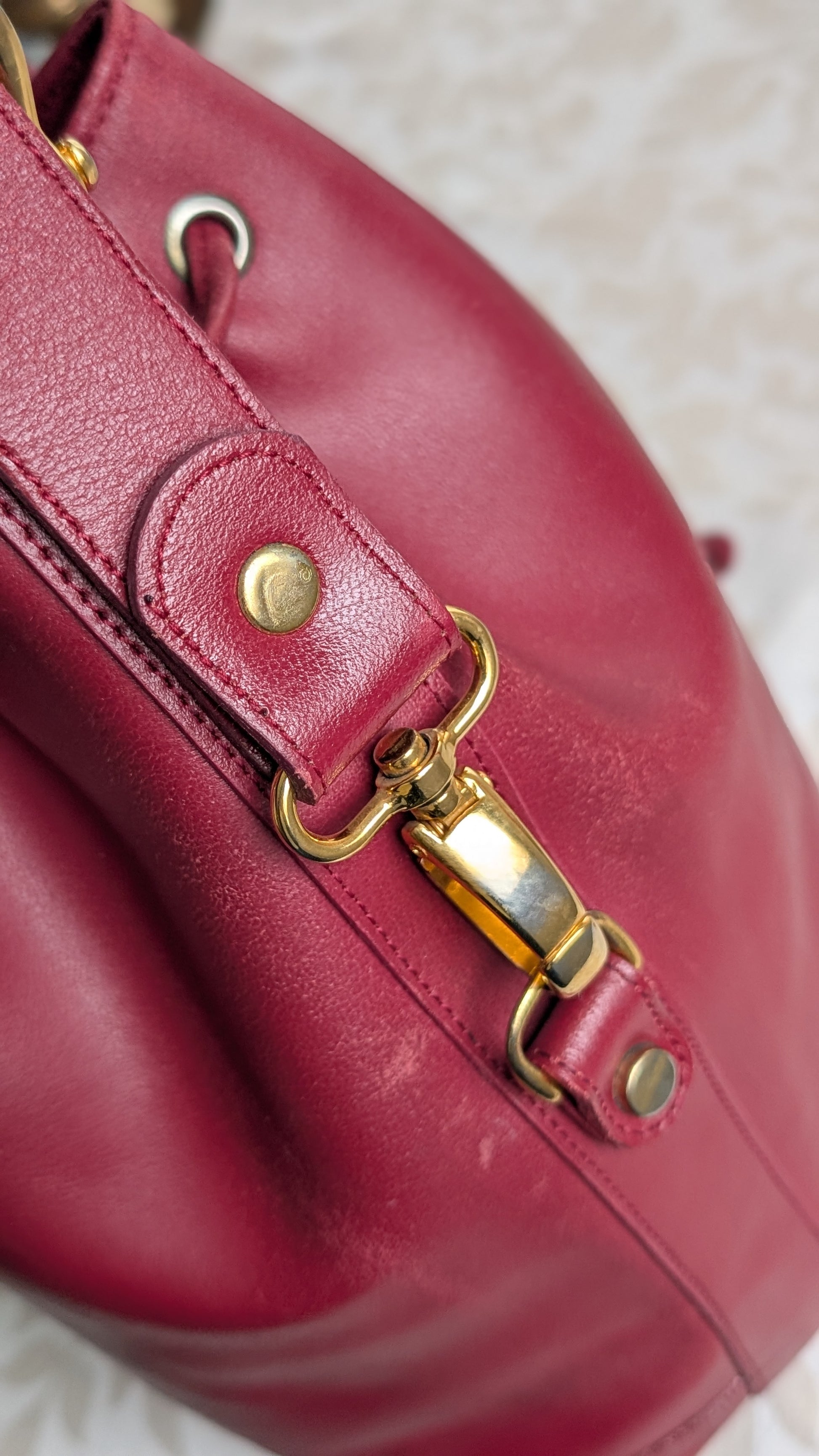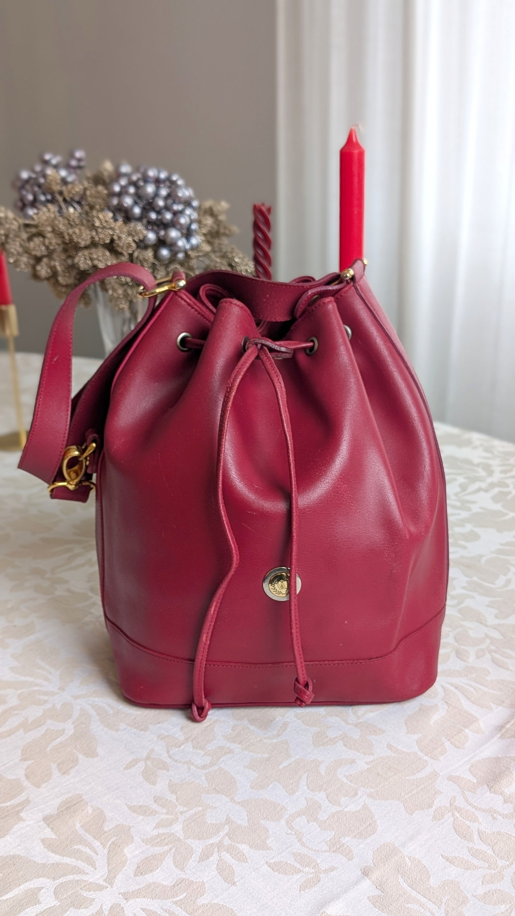 Sac seau en cuir à bandoulière, possède quelques traces, le cuir a eu bien soif, il reste malgré tout dans un bon état (voir photos)