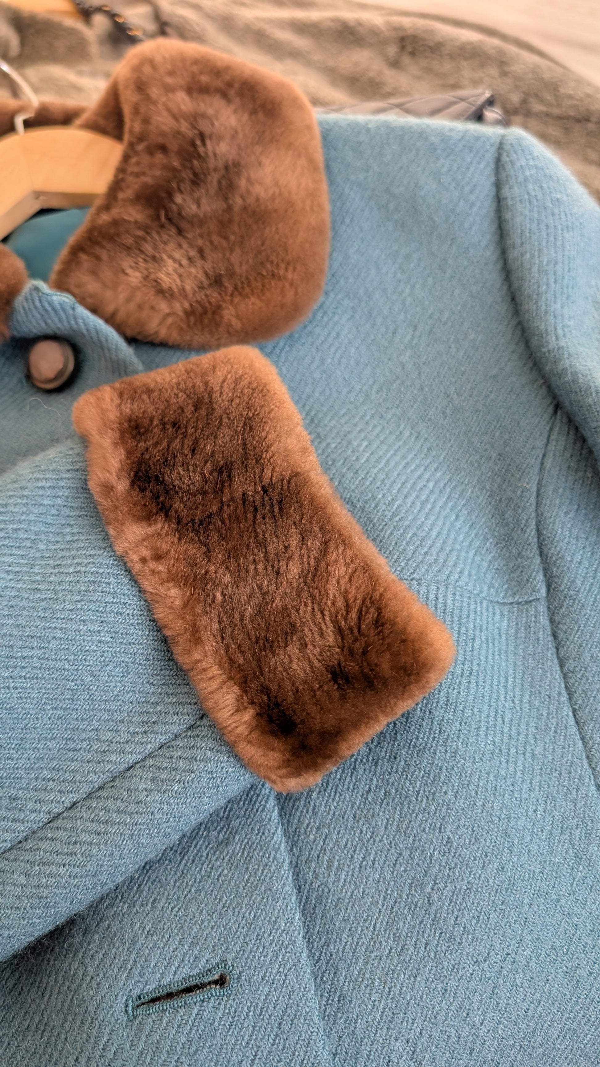 Détails : années 1960, pièce rare, unique, superbe qualité et coupe féminine, un minuscule défaut sur la laine très peu visible (voir photo)