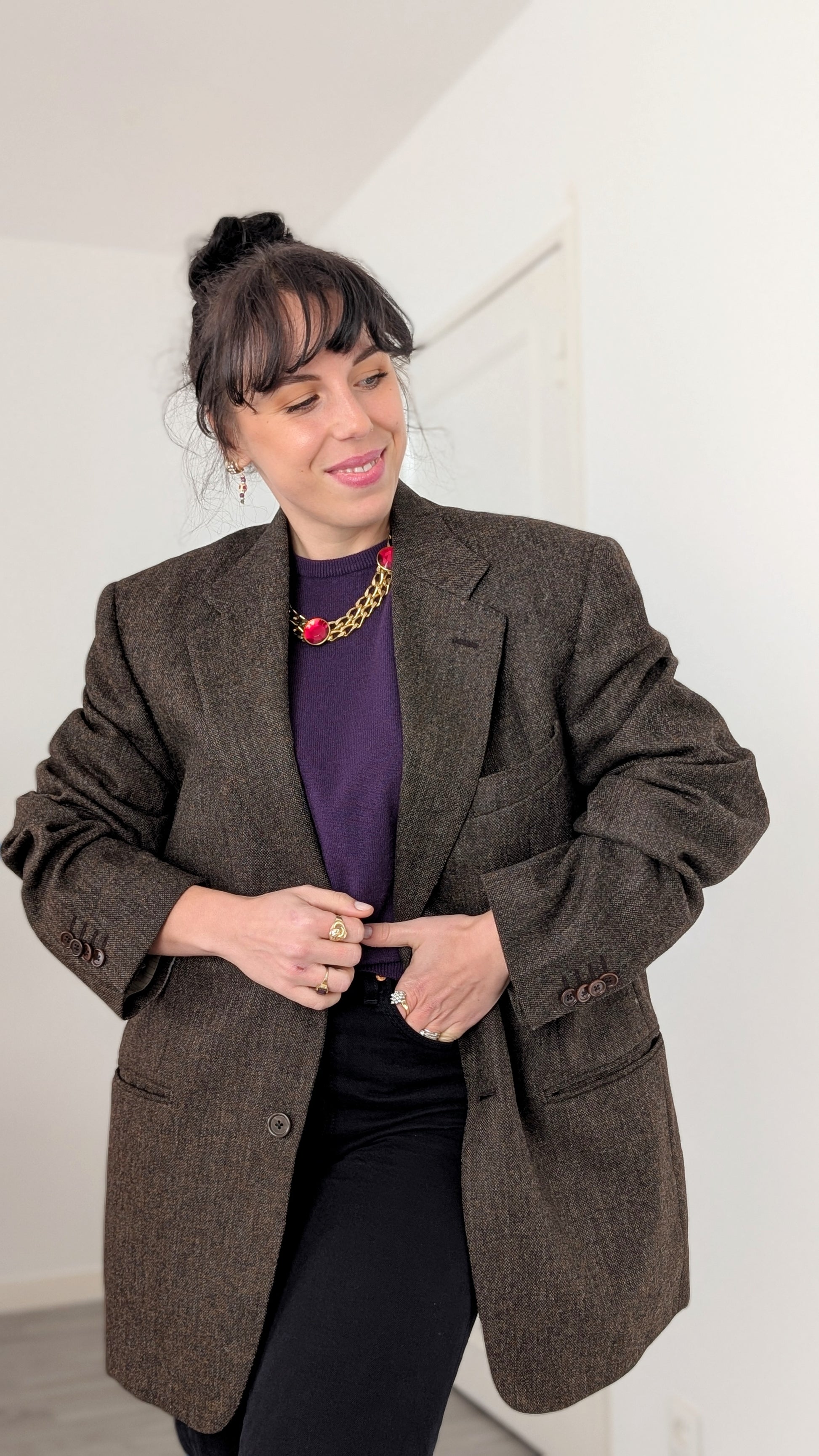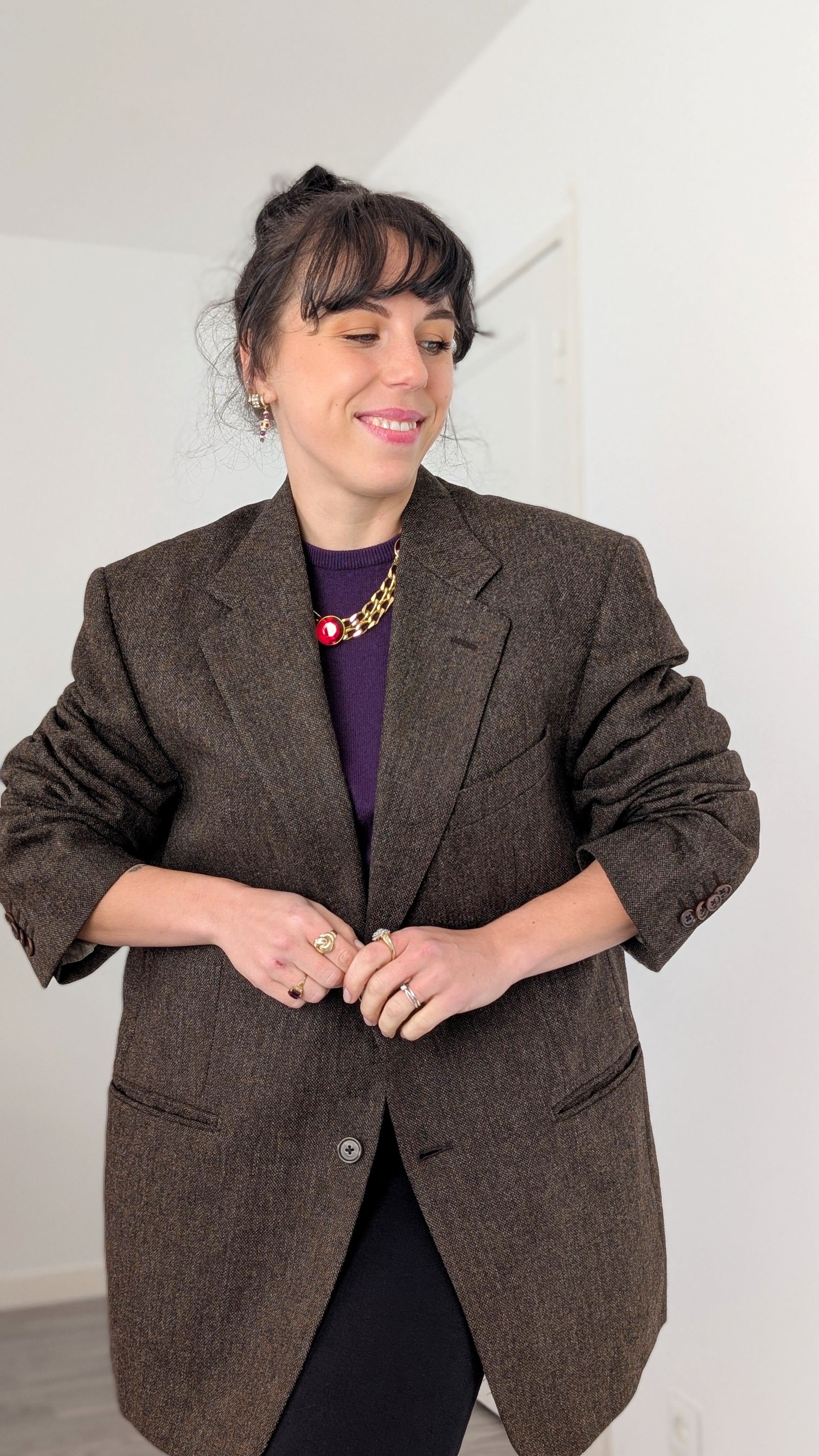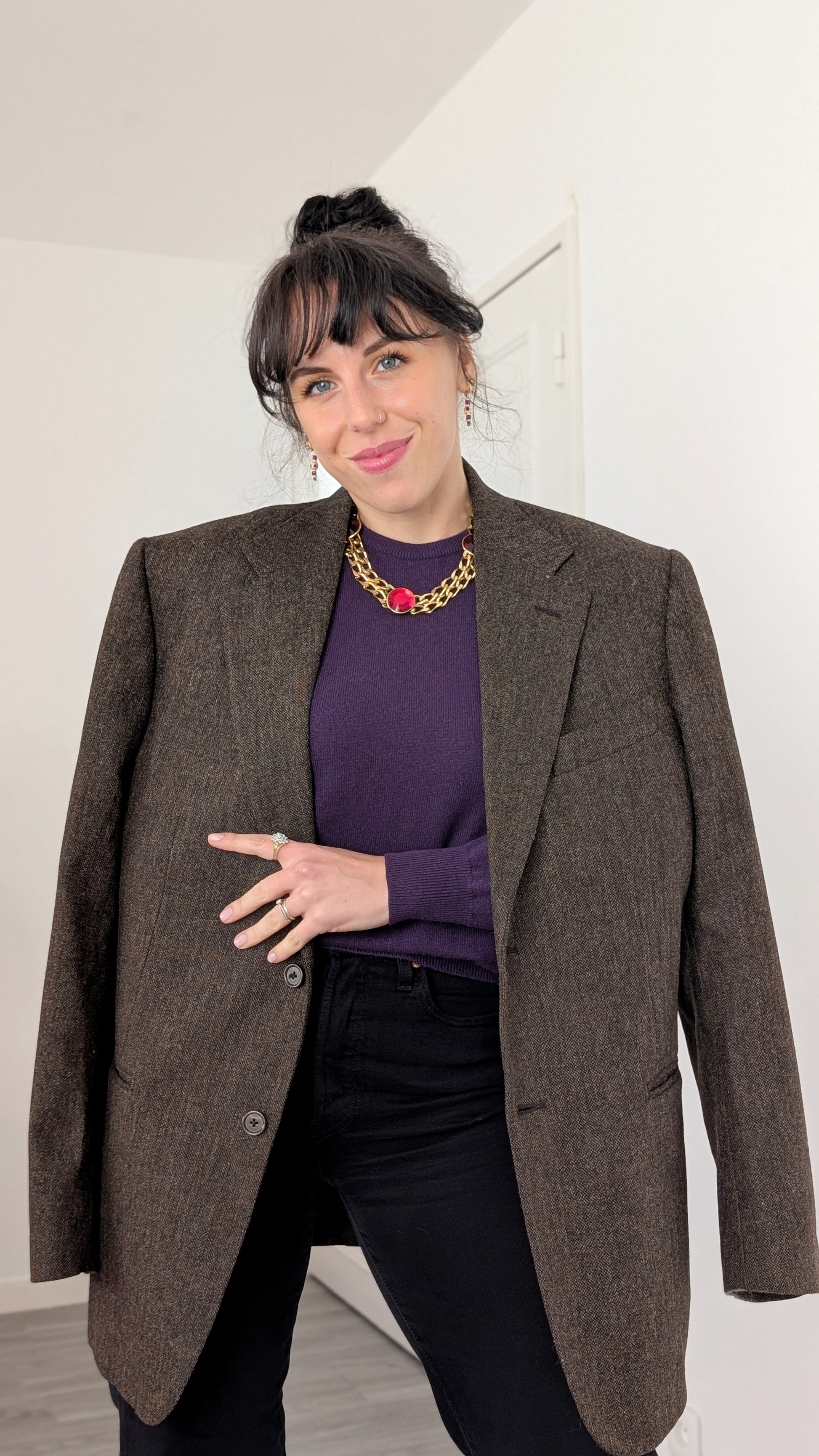 Détails : superbe qualité, poches latérales, coupe masculine, l'oversize parfait pour les 42-44, il me va beaucoup trop grand sur les photos