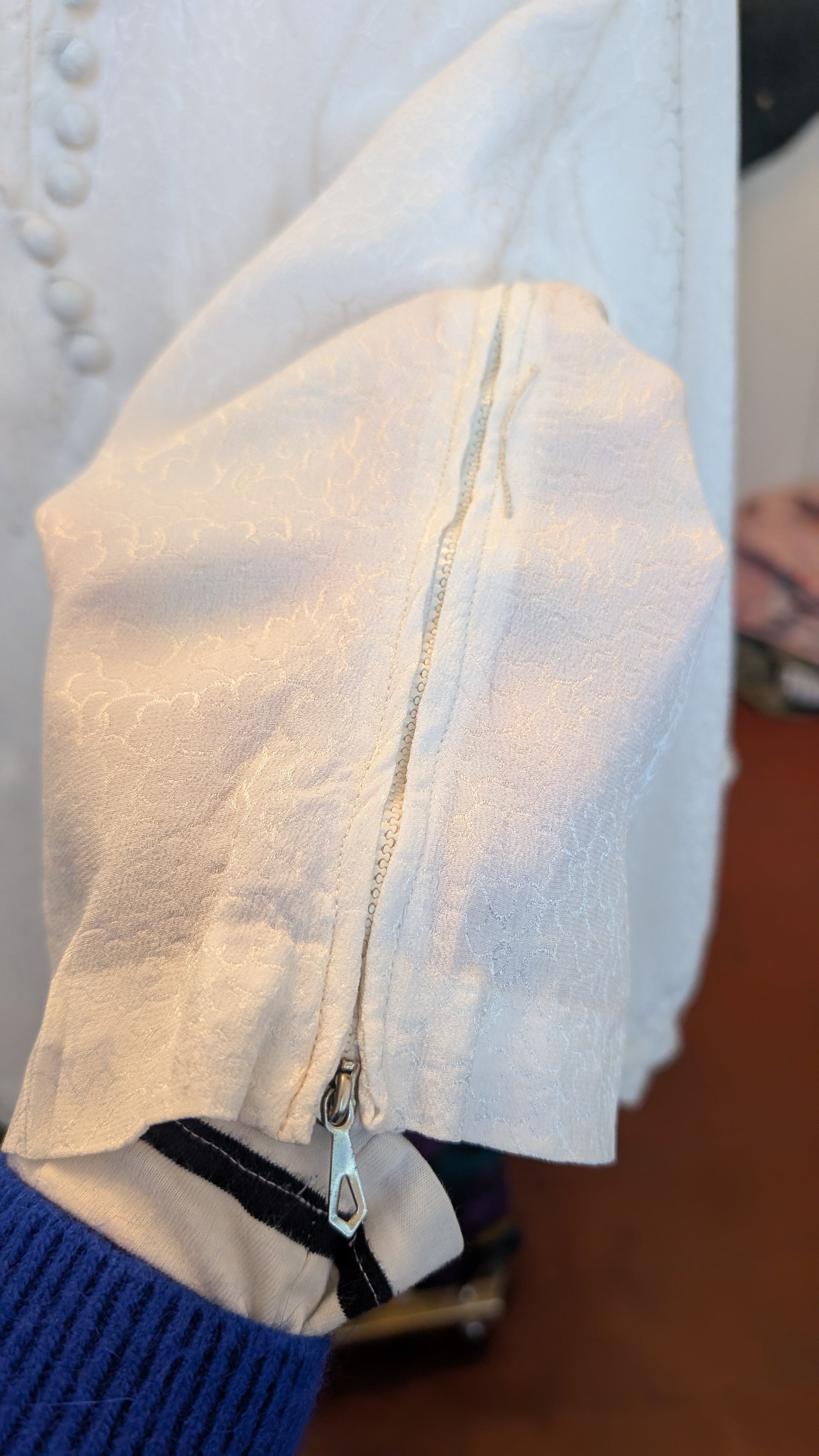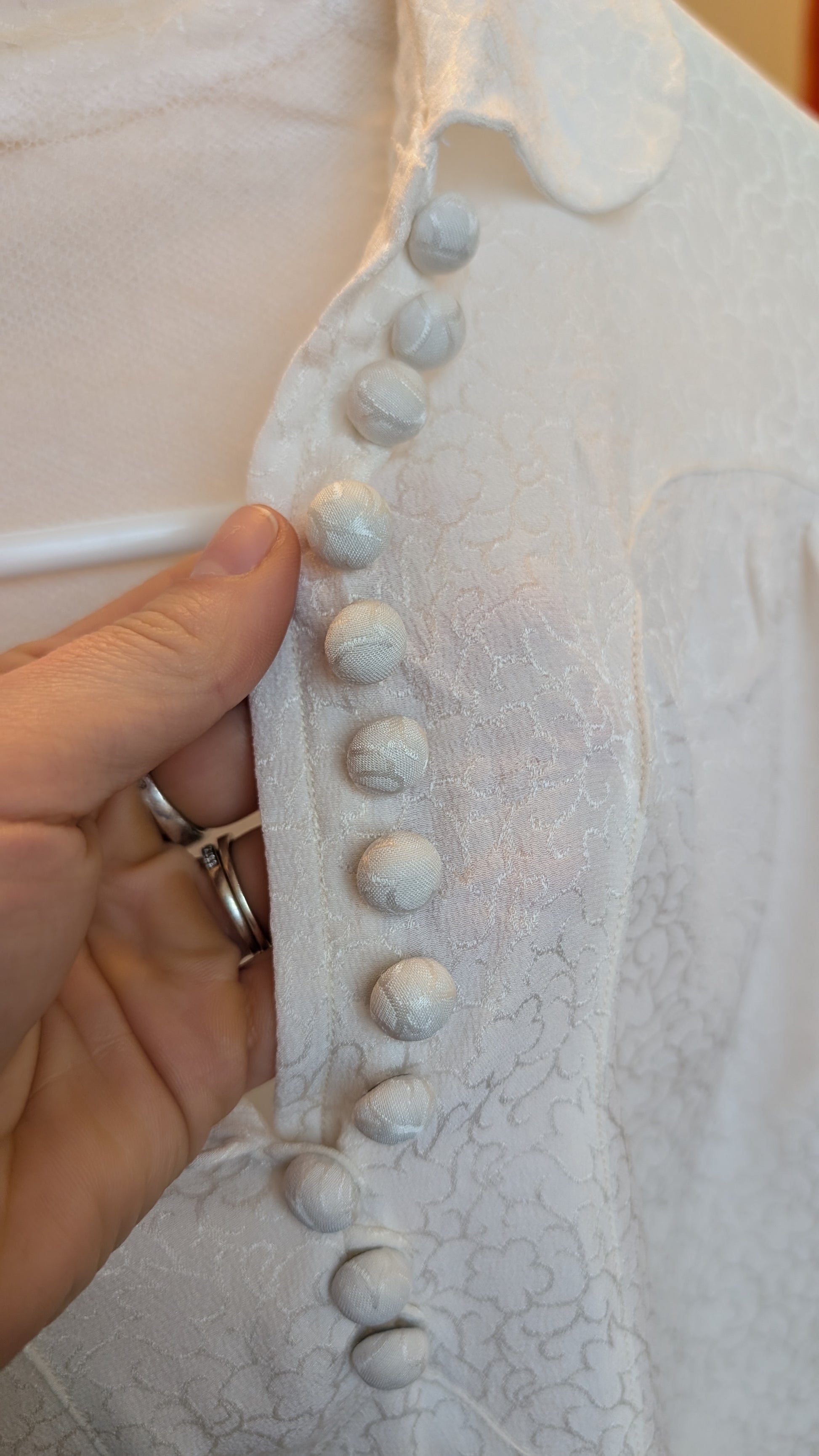 Détails : véritable blouse des années 1940, impeccable, je pense jamais portée, superbe coupe typique de cette époque là, protection au niveau des aisselles, sublime et féminine