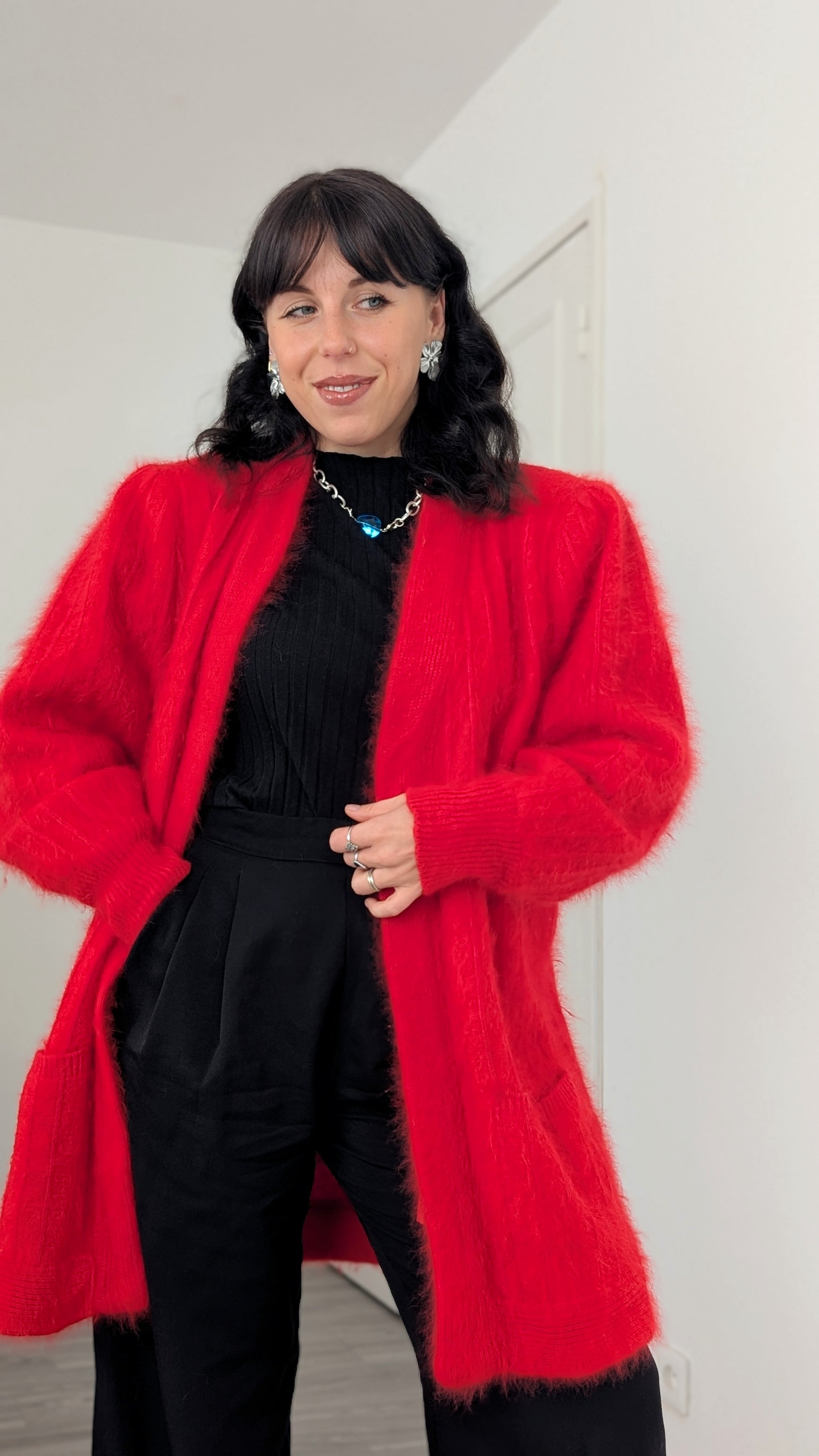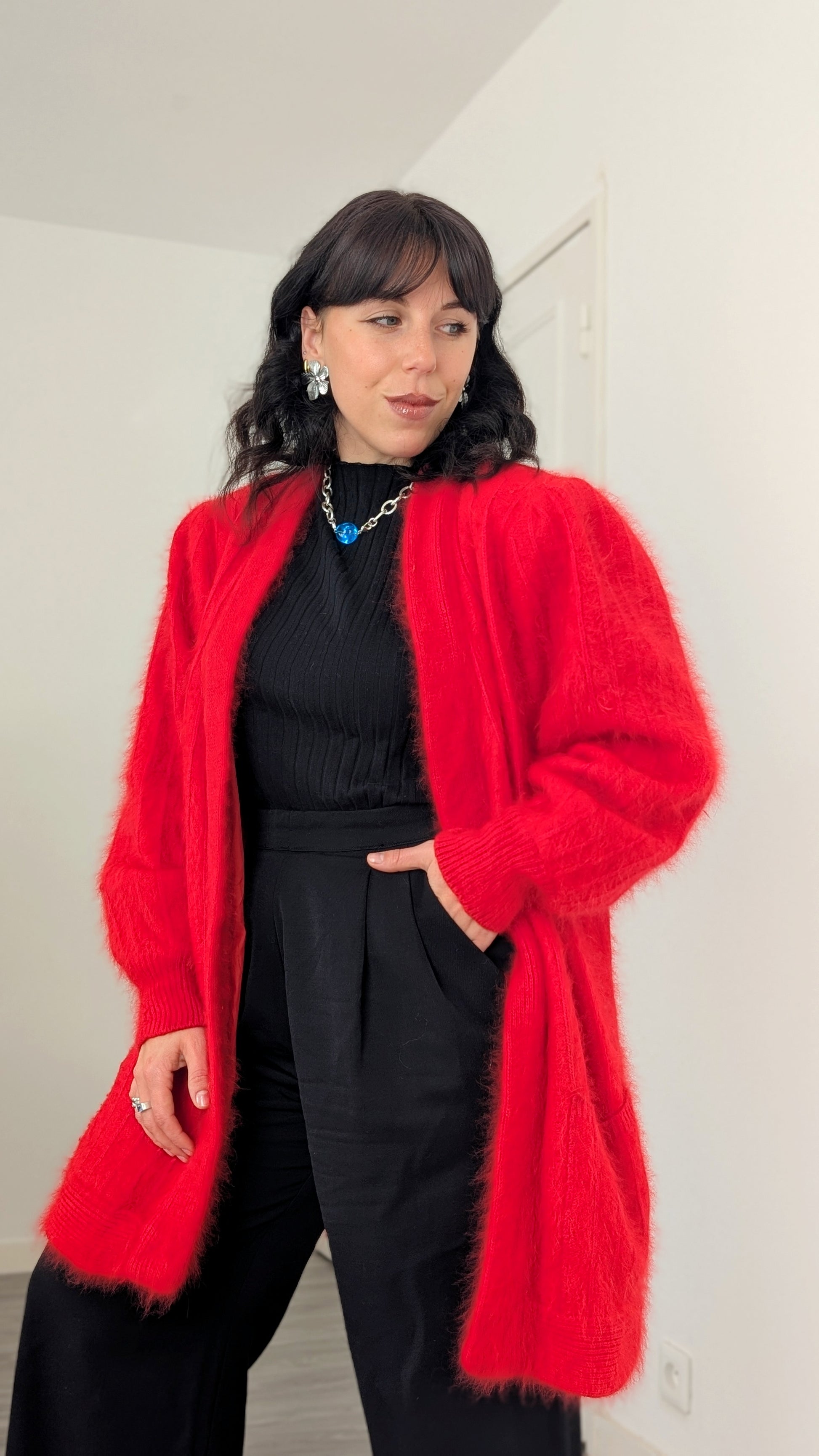 Mensurations : aisselles/buste 54 cm, longueur 84 cm, épaules 47 cm, longueur manches 64 cm