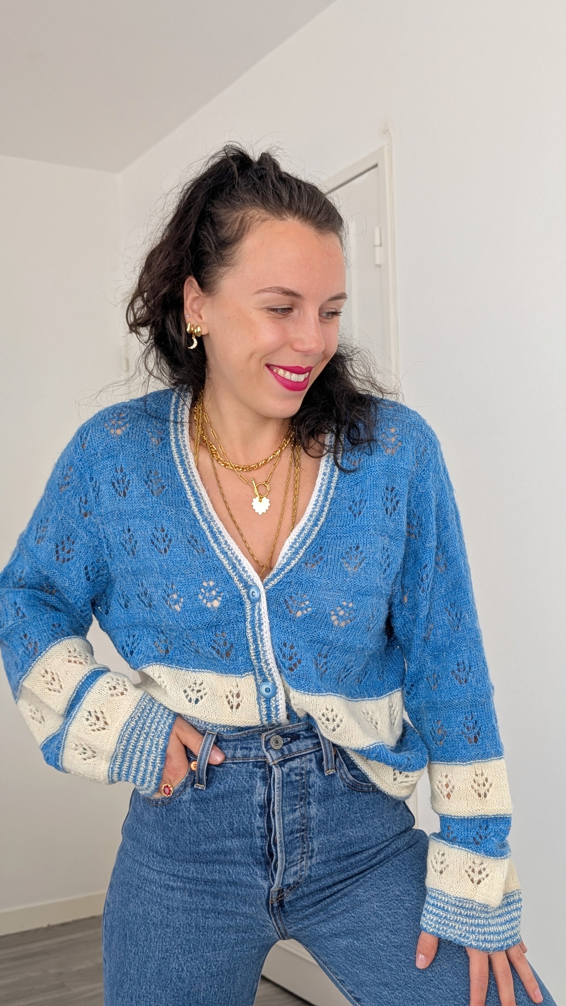 Détails : tricoté à la main, très belle coupe, couleur très lumineuse
