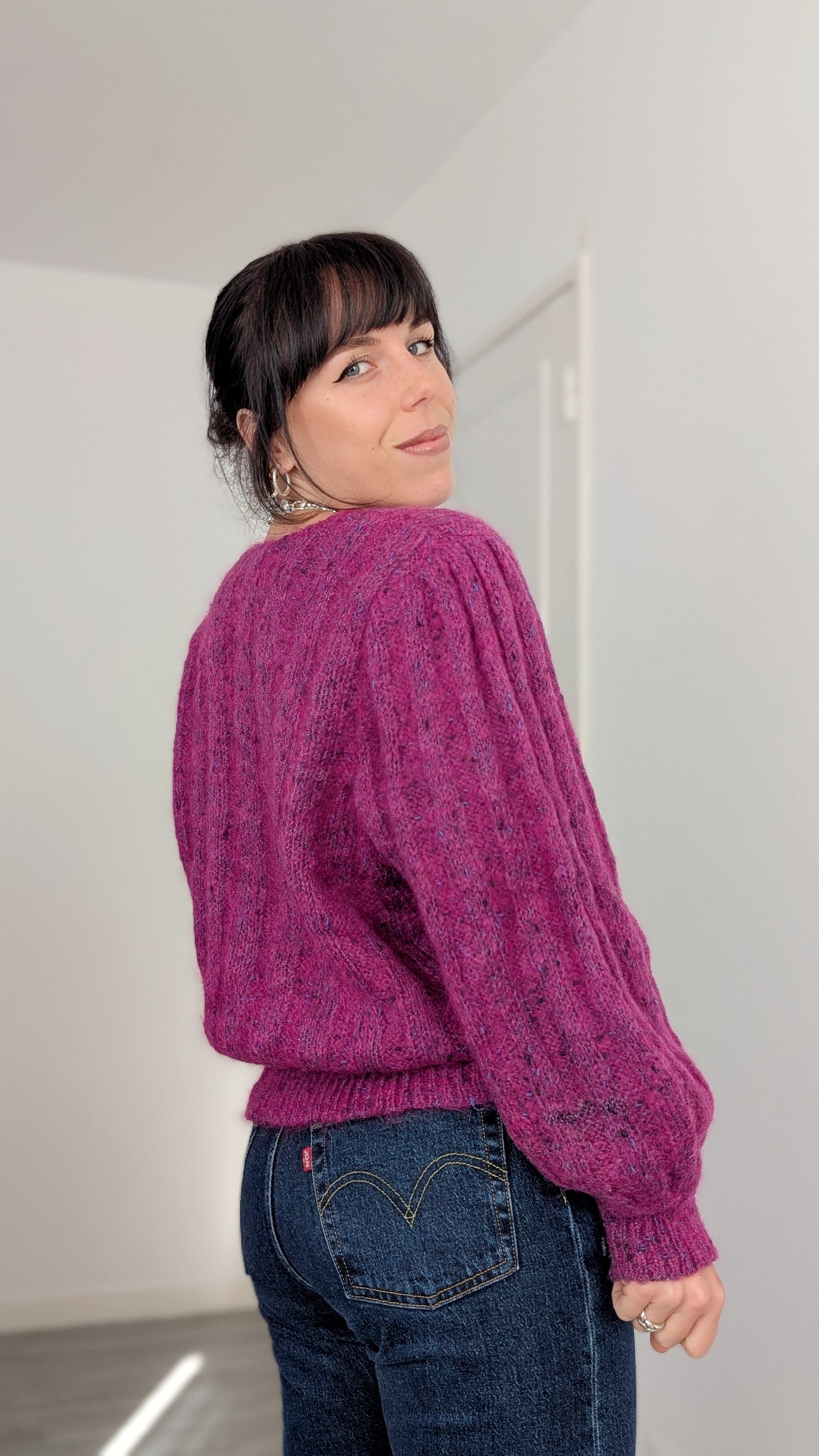 Détails : années 80, semble être fait à la main, manches bouffantes, se ferme sur le devant, attention il poque un peu s'il est porté directement sur la peau, le mieux c'est de le porter avec un haut manches longues