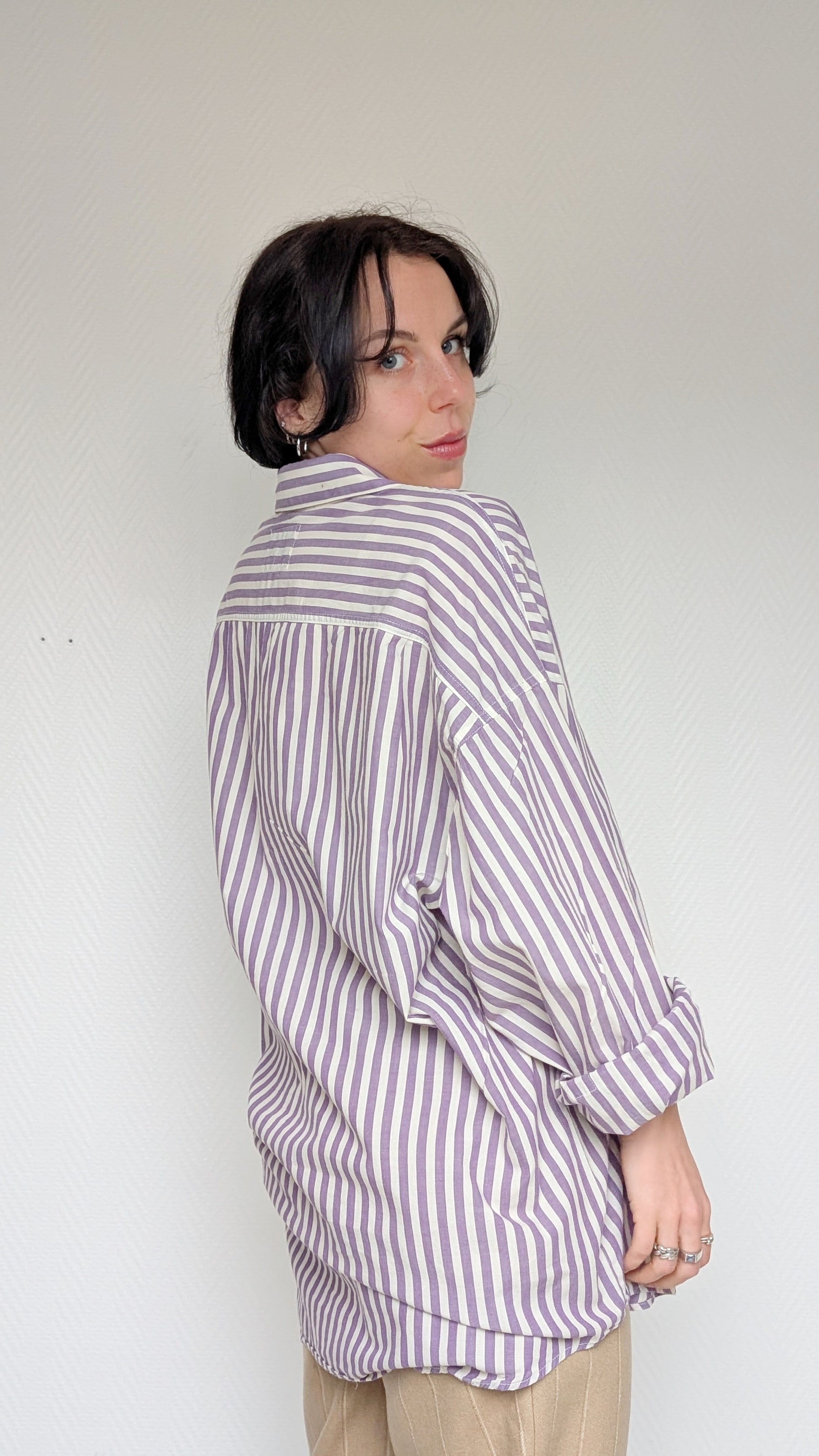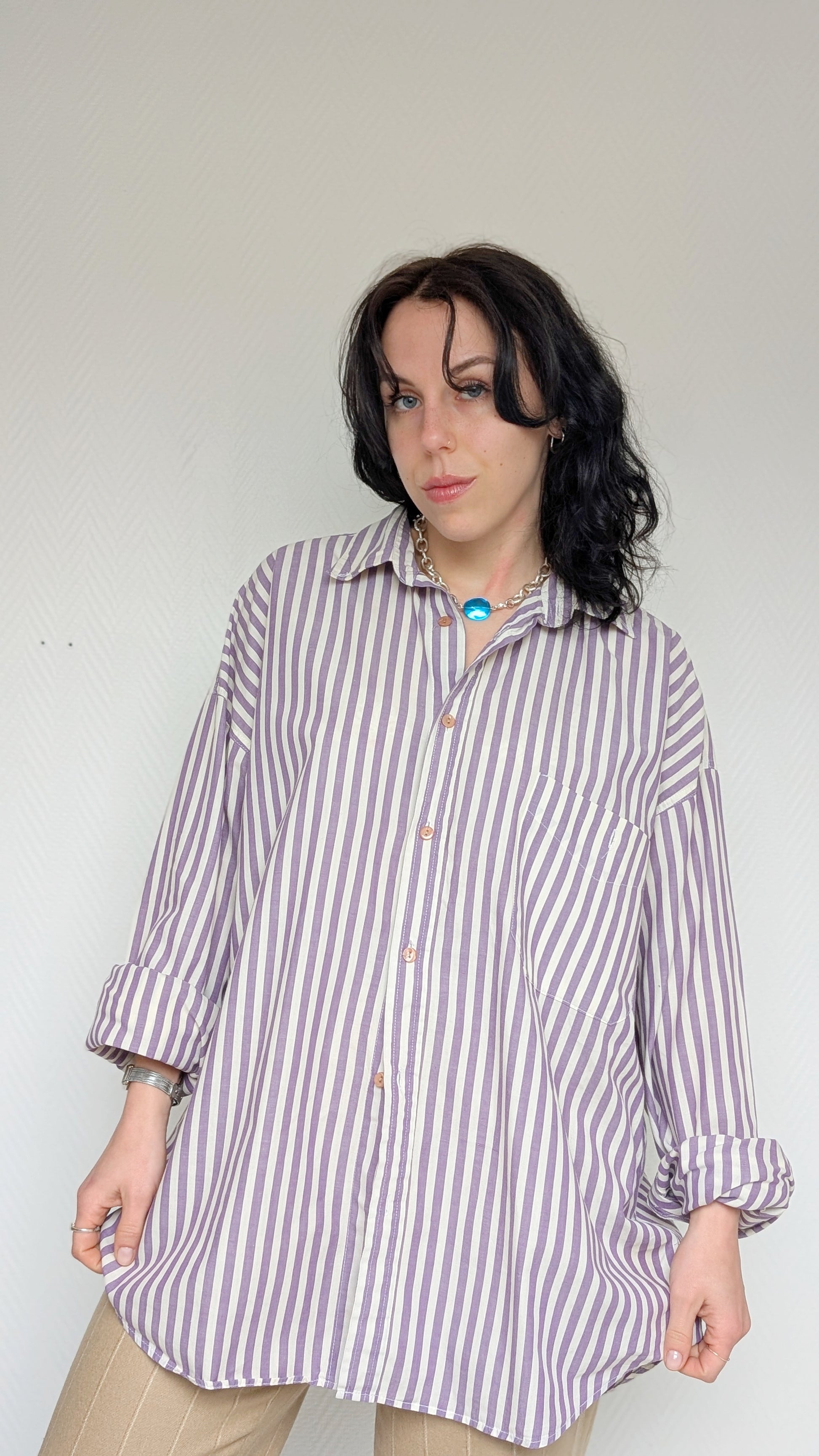 Détails : années 1980, coupe oversize, ample, à porter ouverte ou nouée à la taille, on peut beaucoup jouer avec