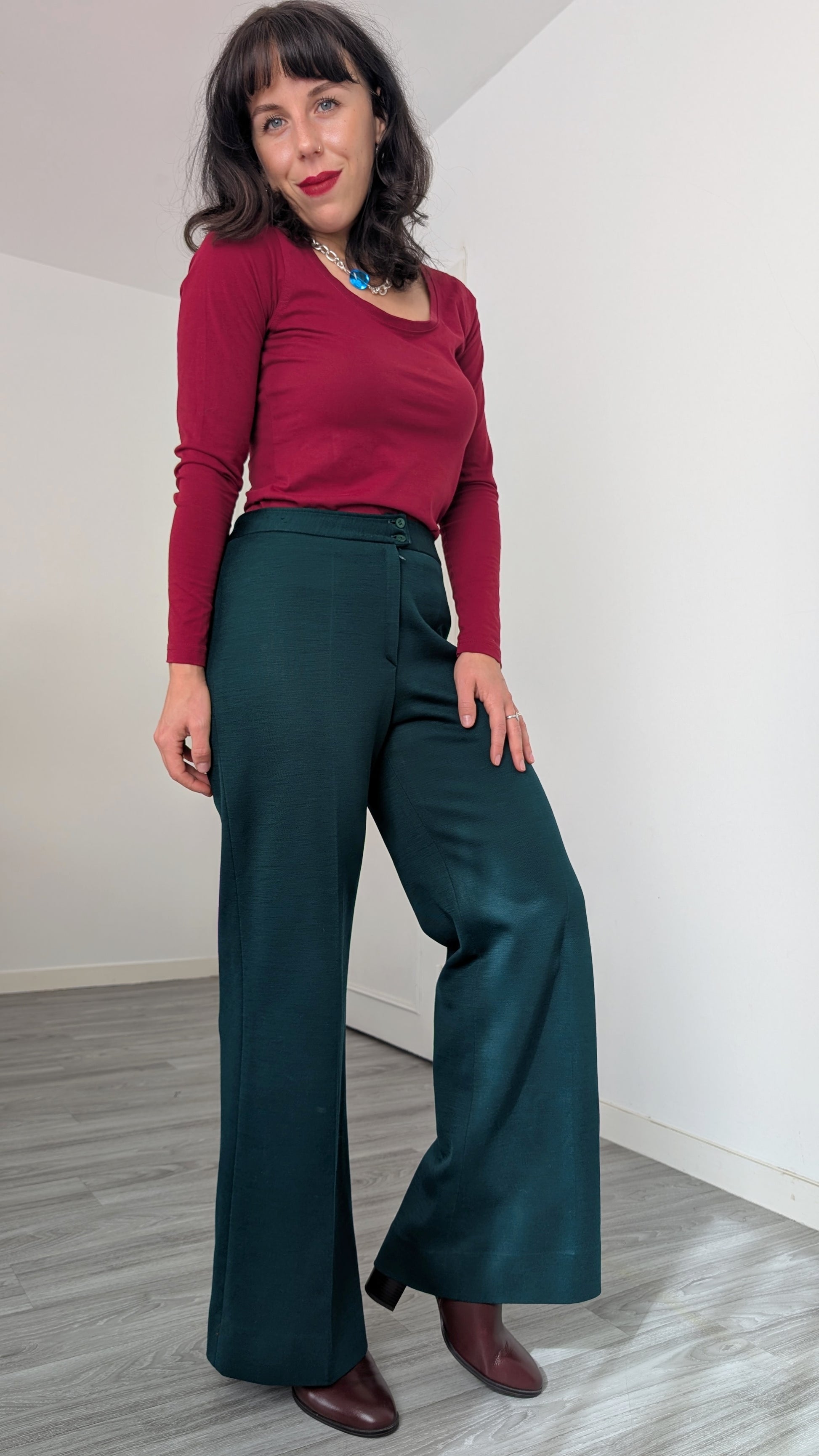 Détails : années 1970, super belle coupe, taille mi-haute, laine douce très agréable à porter, possède quelques légers défauts quasiment pas visibles 'voir photo)