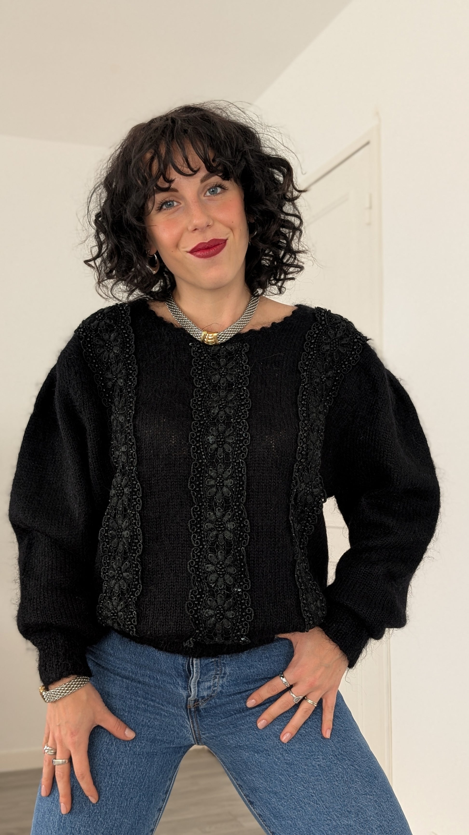 Mensurations : aisselles/buste 56 cm, longueur 63 cm, épaules 53 cm, longueur manches 72 cm