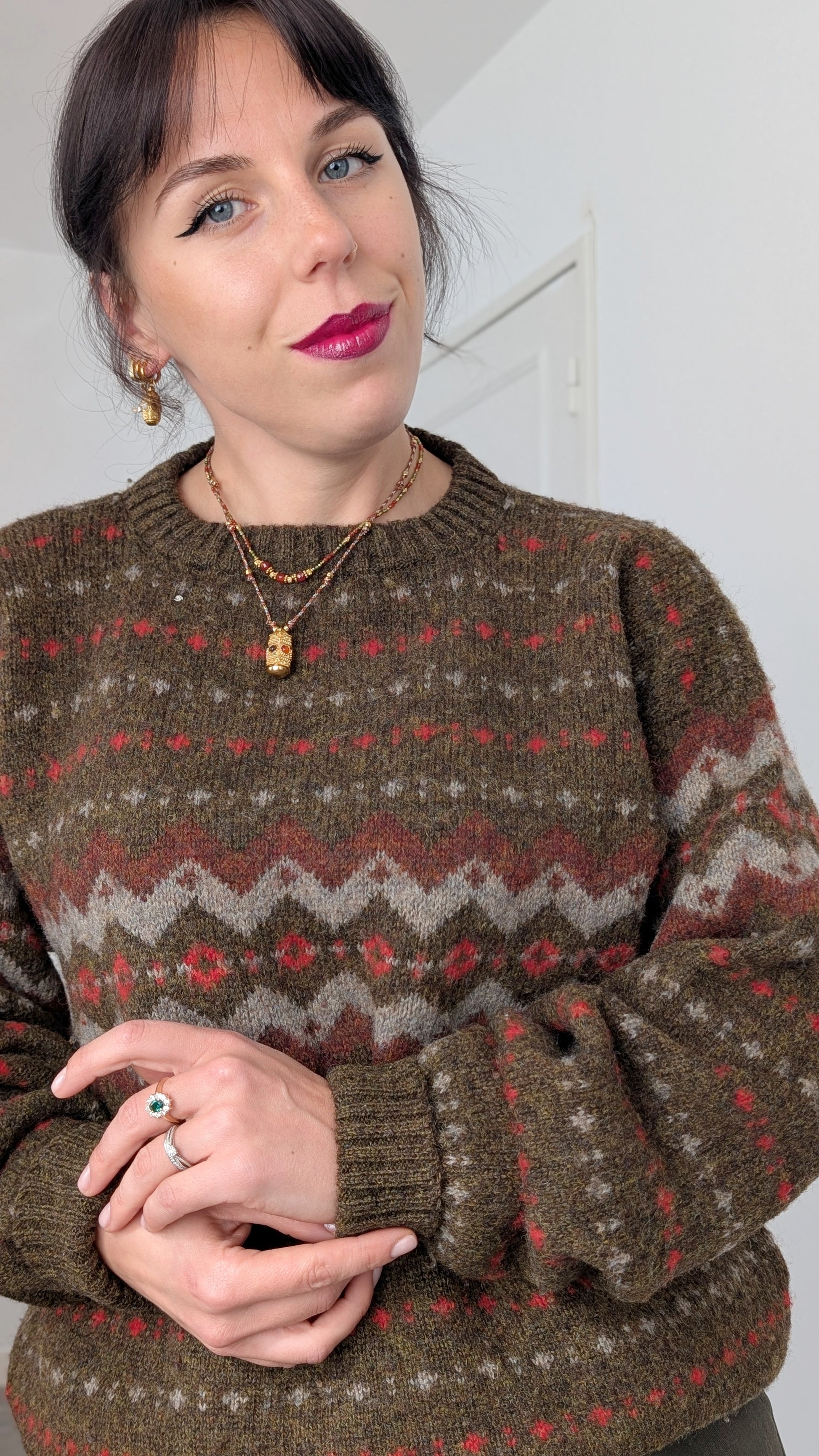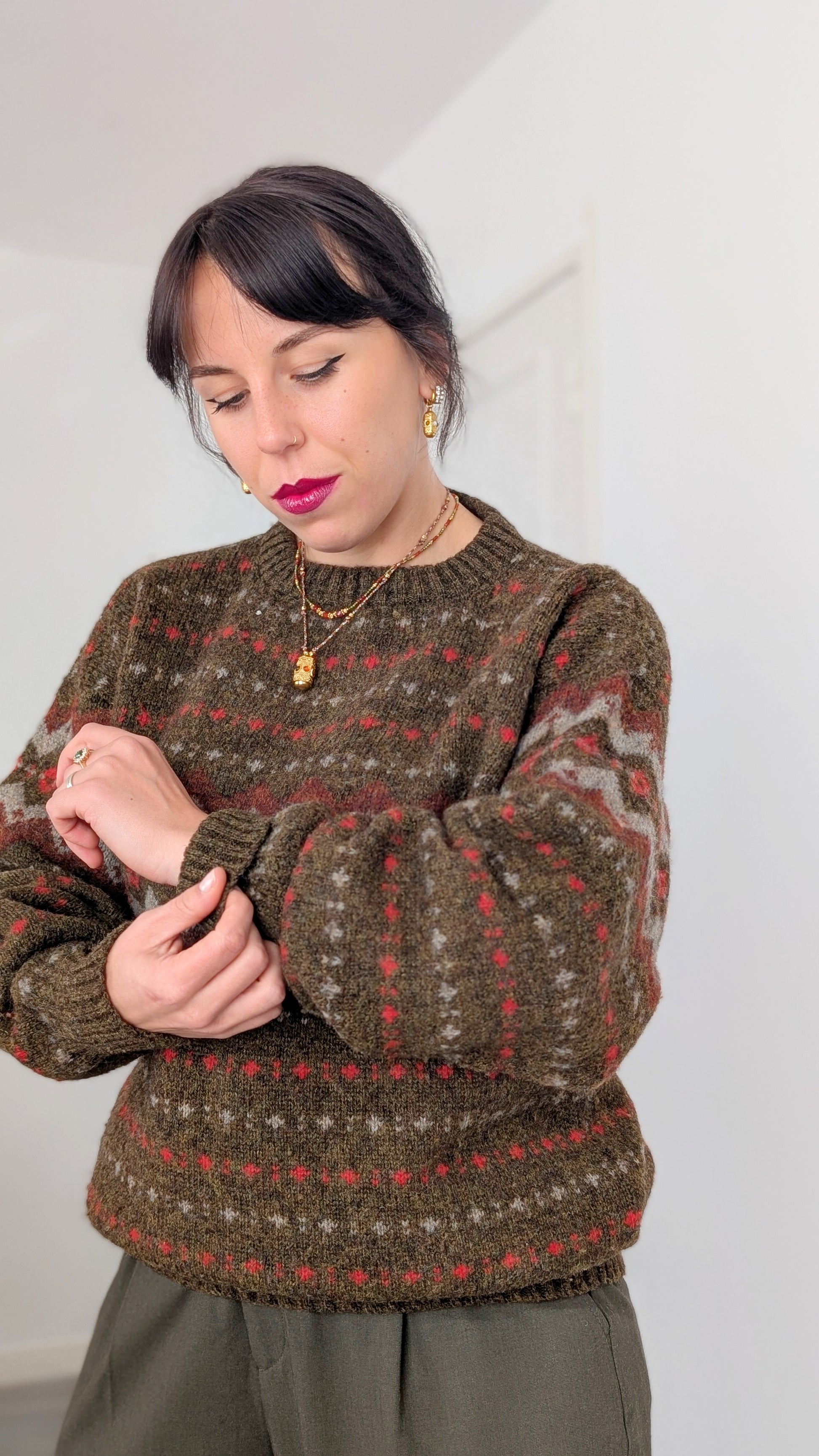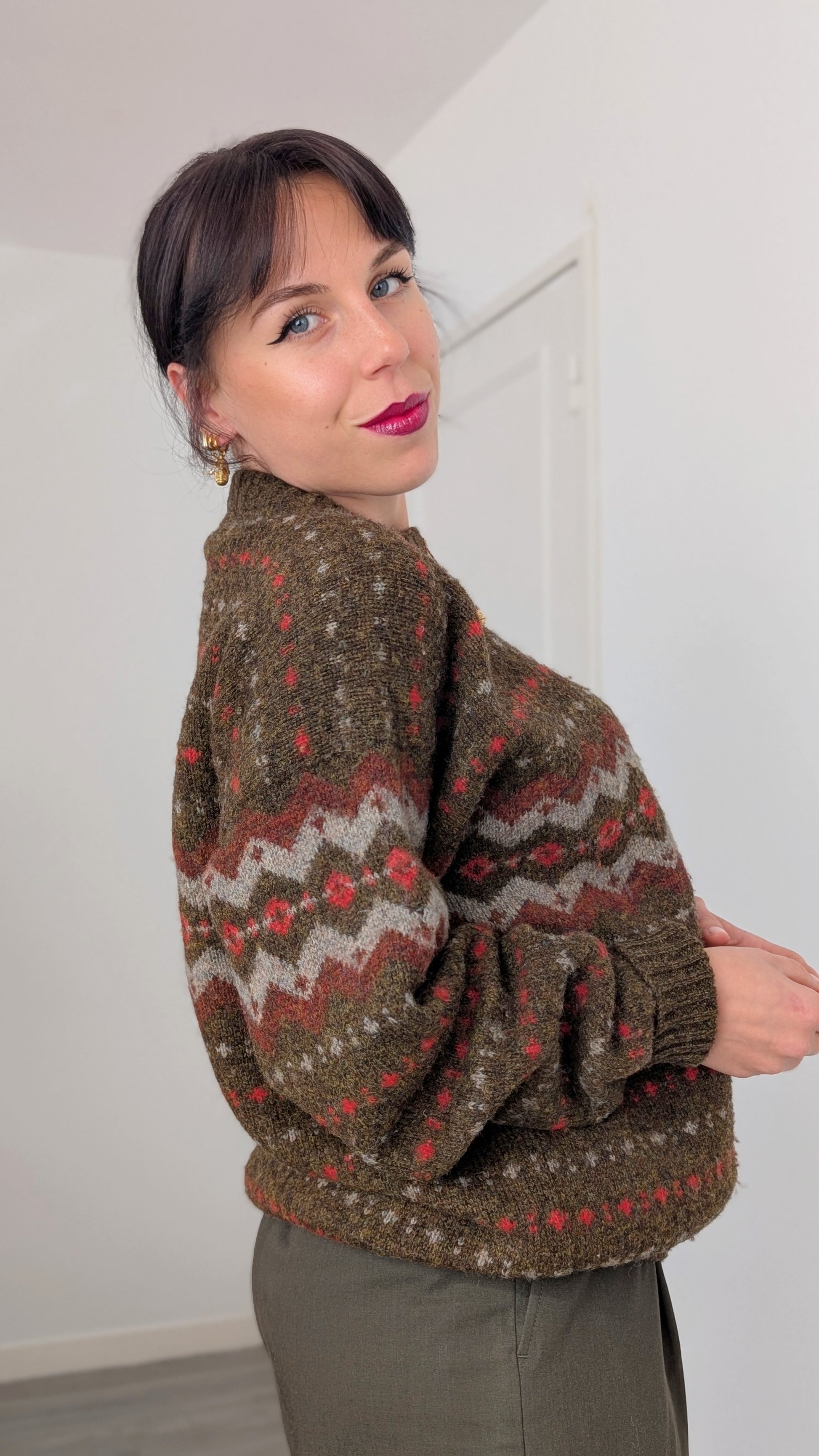 Mensurations : aisselles/buste 56 cm, longueur 73 cm, épaules 63 cm, longueur manches 72 cm