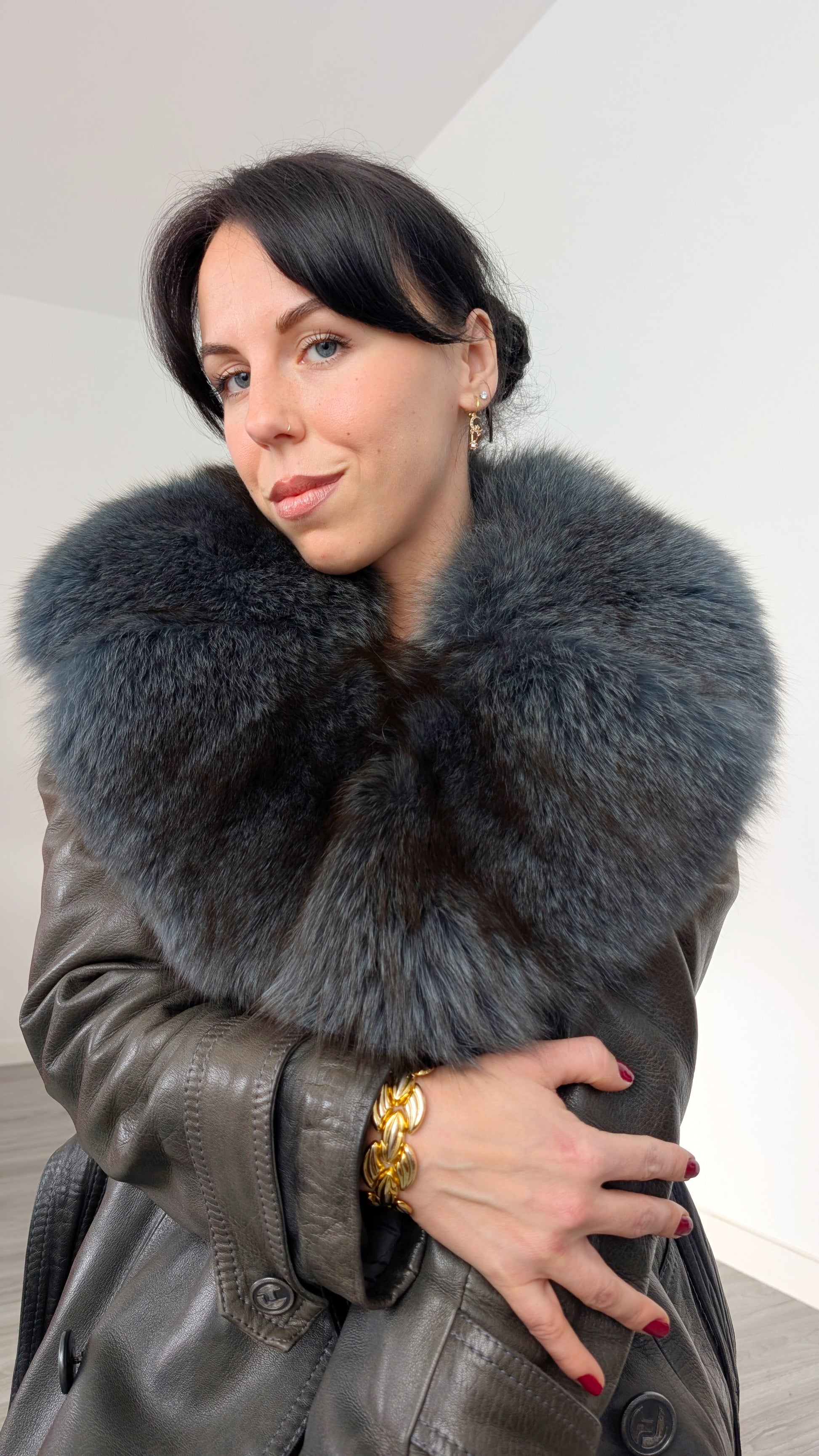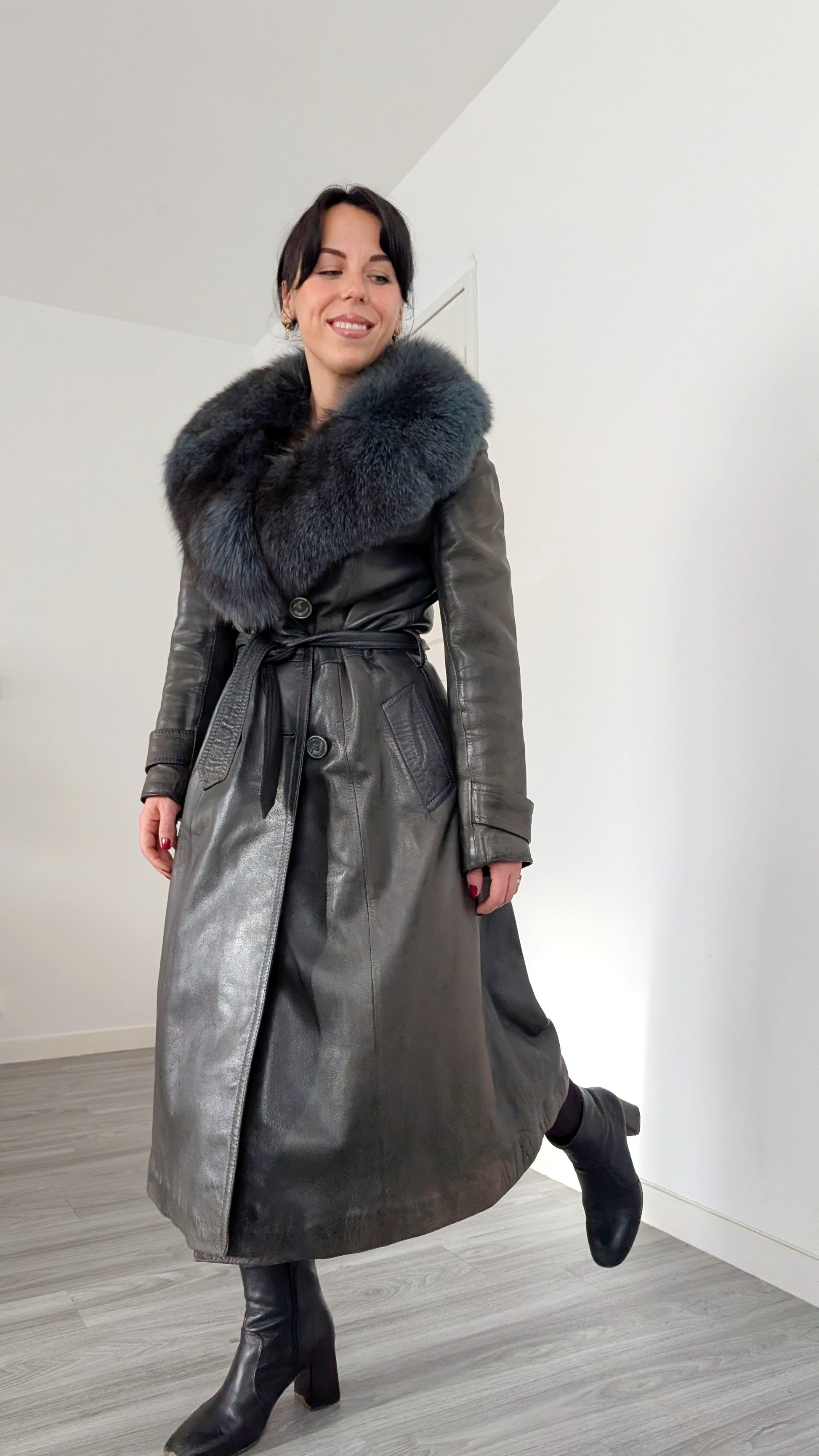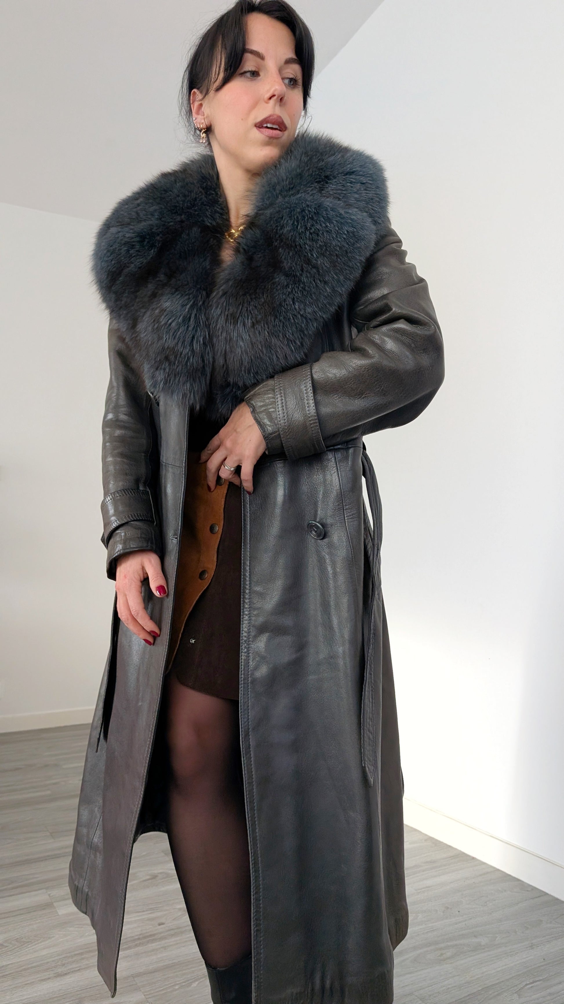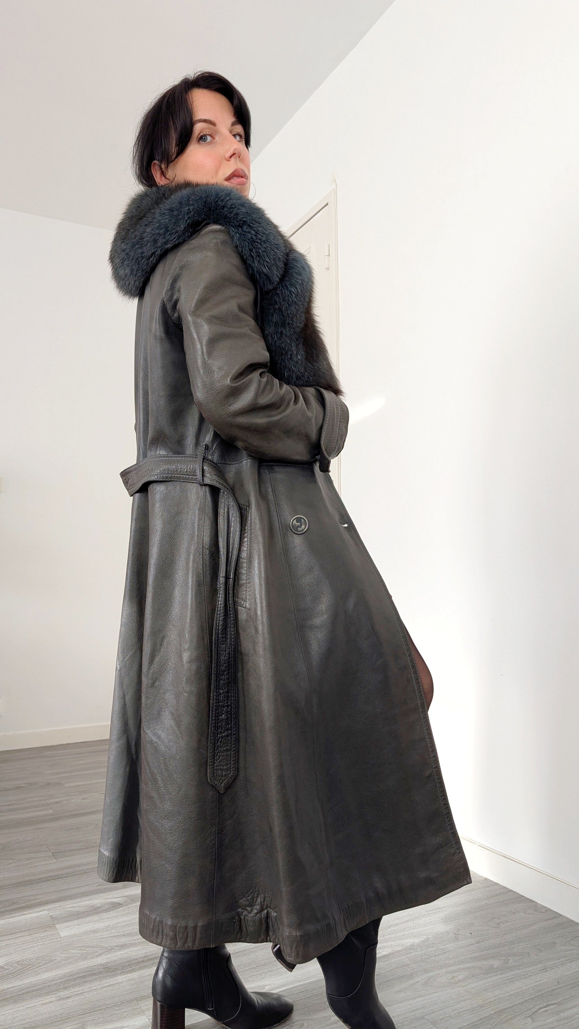 Trench cuir et fourrure 1970 rare T36-38