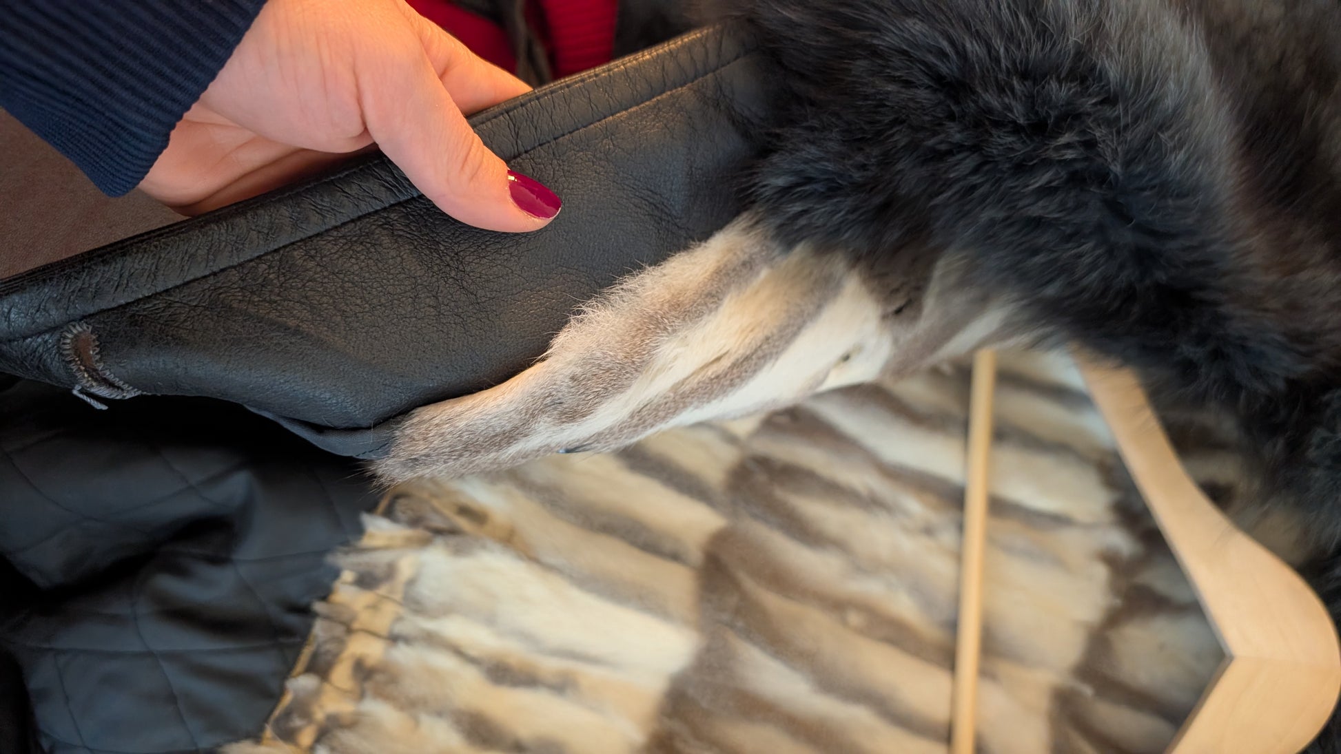 Matière : cuir d'agneau et fourrure sur le col, intérieure