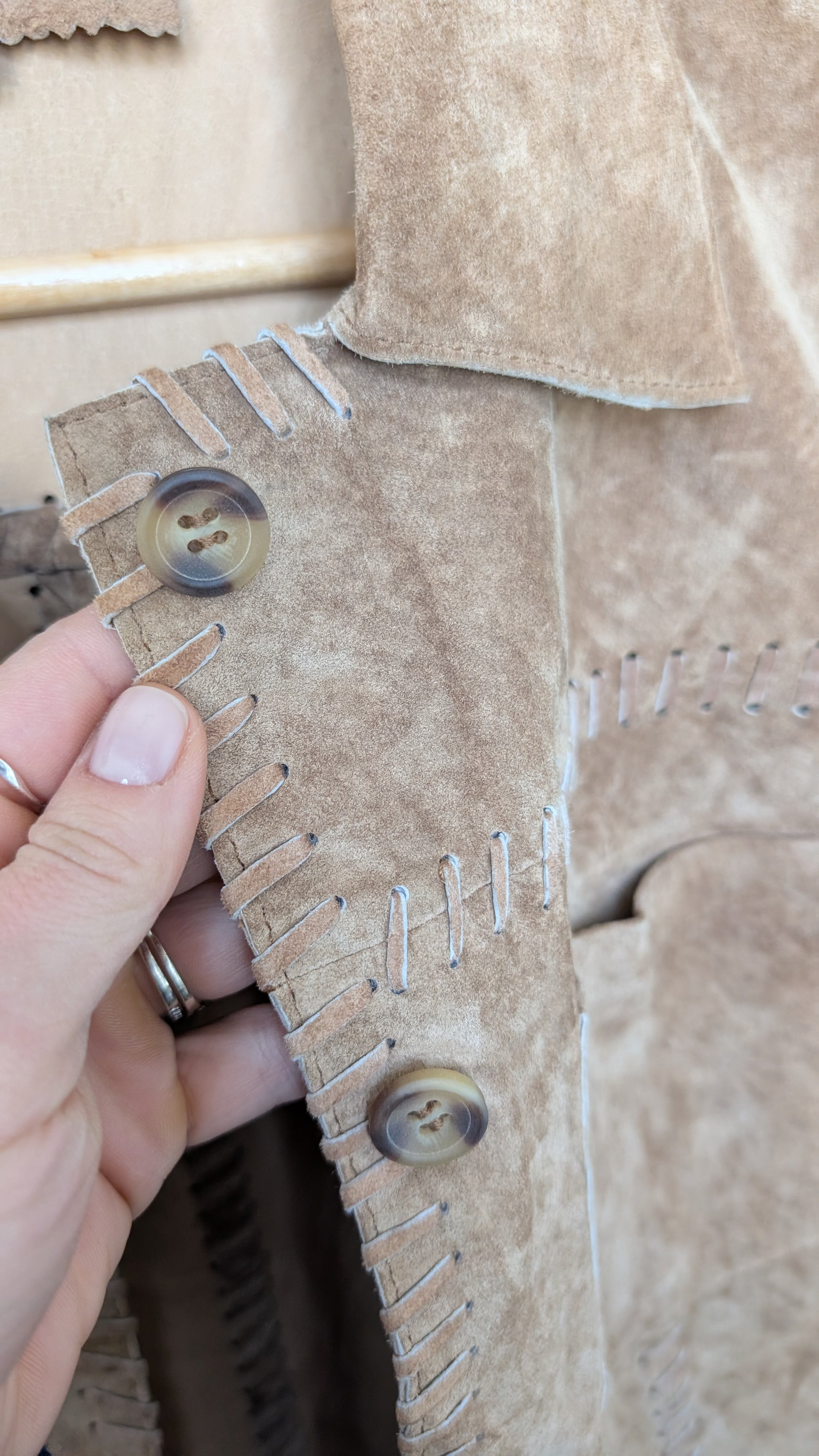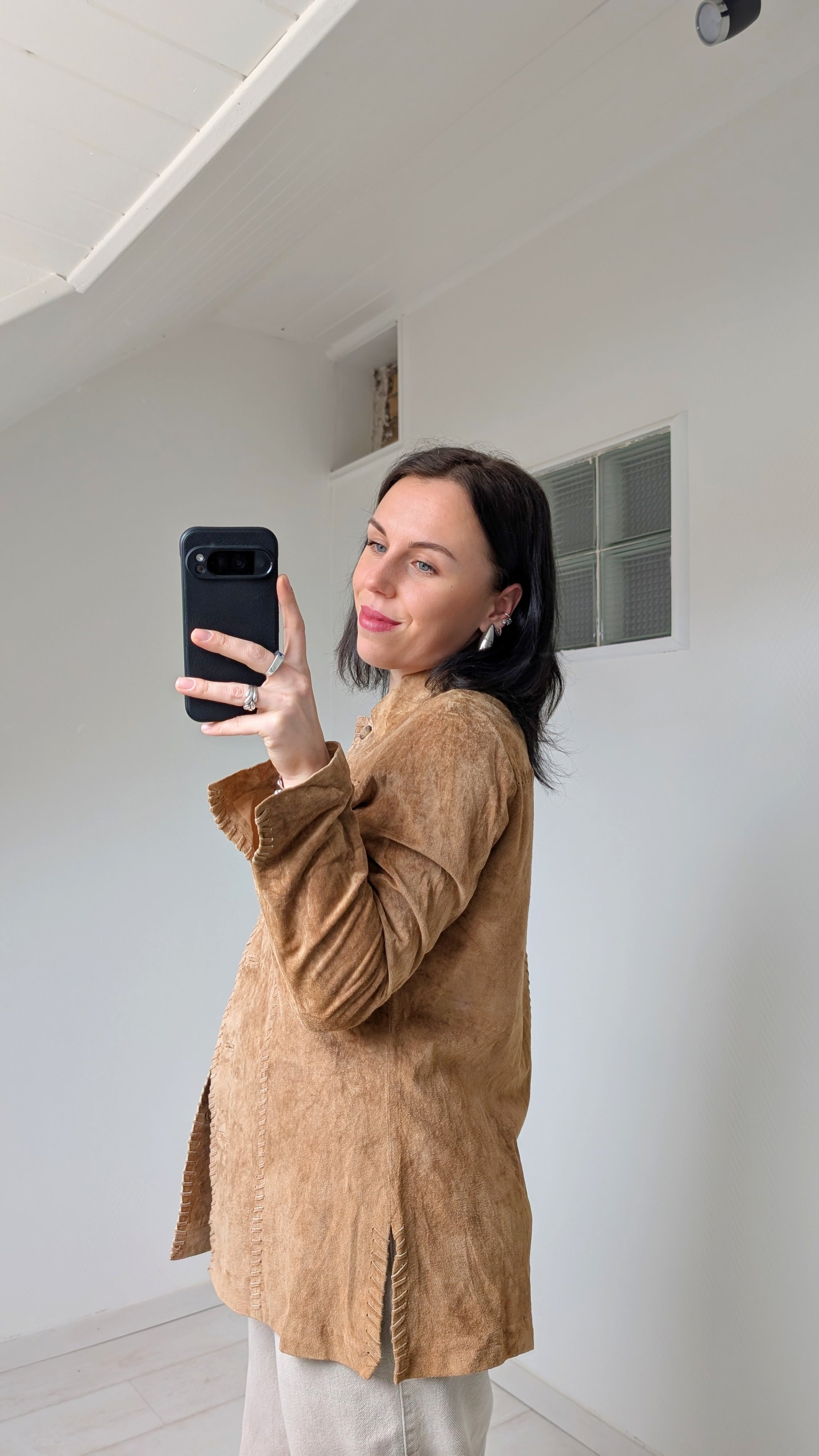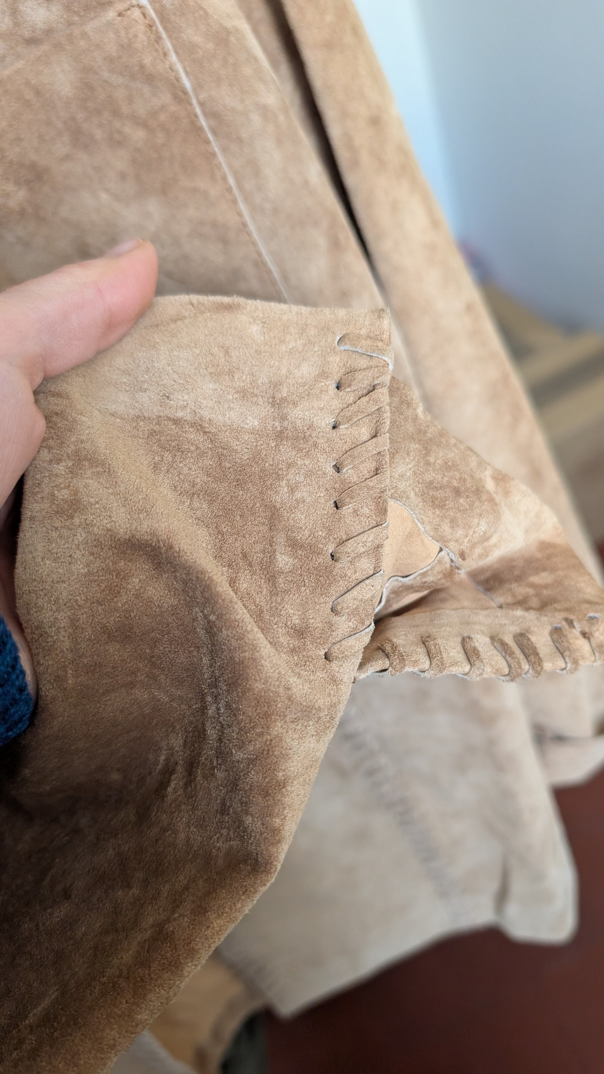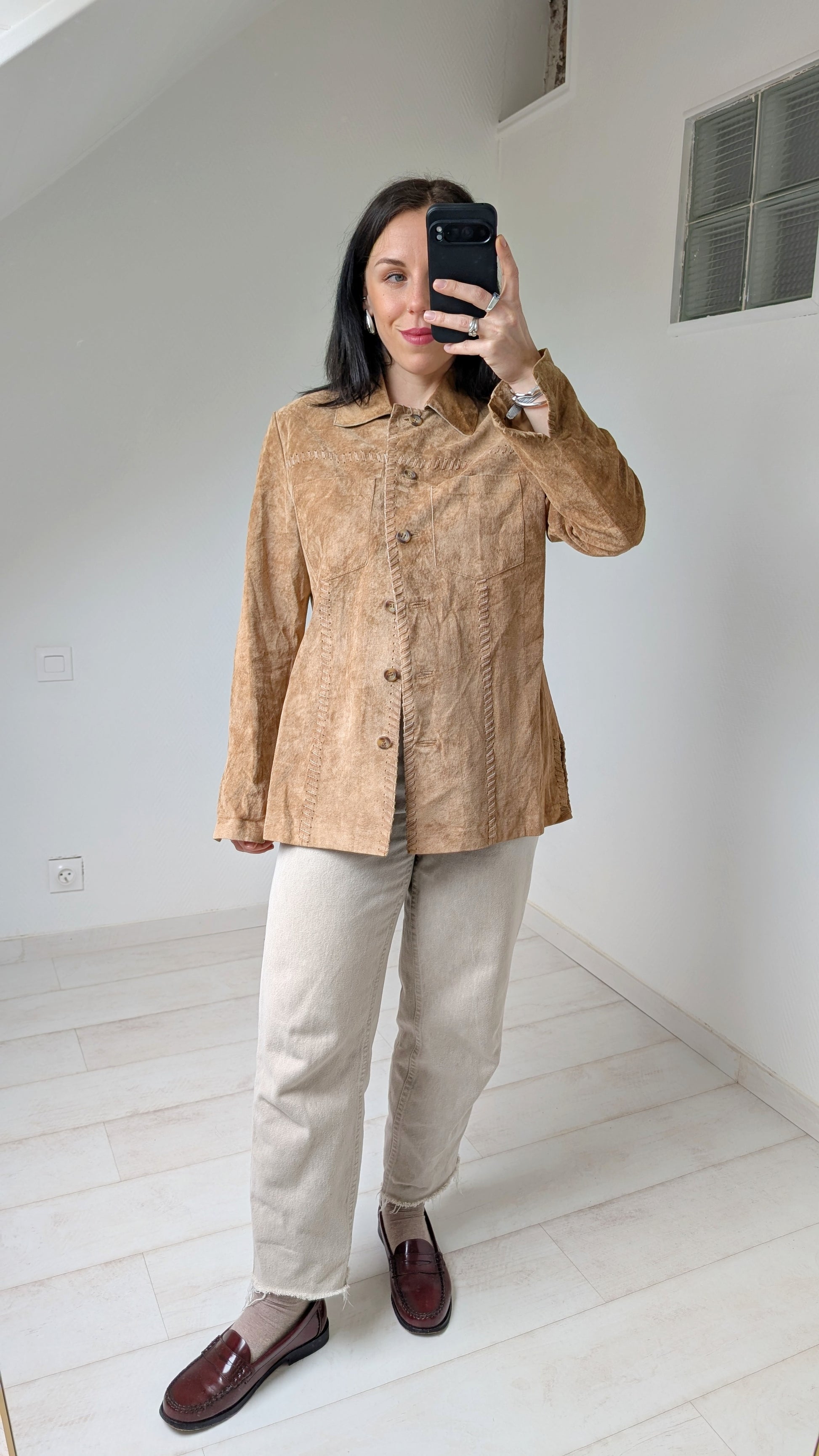 Détails : années 90, superbe coupe et daim de très belle qualité, sur les images, à cause de la lumière, on aperçoit certaines traces qui n'ont absolument pas lieu en vrai, elle est dans un état impeccable